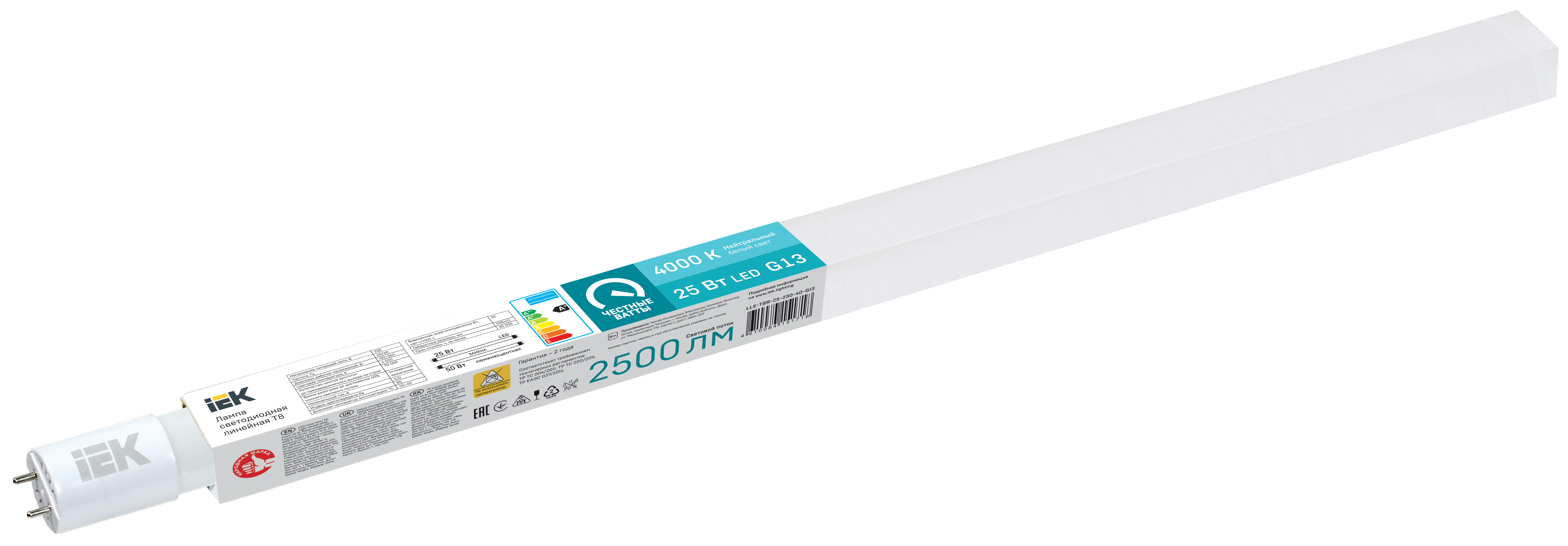 Наименование: Лампа светодиодная T8 линейная 25Вт 2500лм 230В 4000К 1200мм G13 IEK