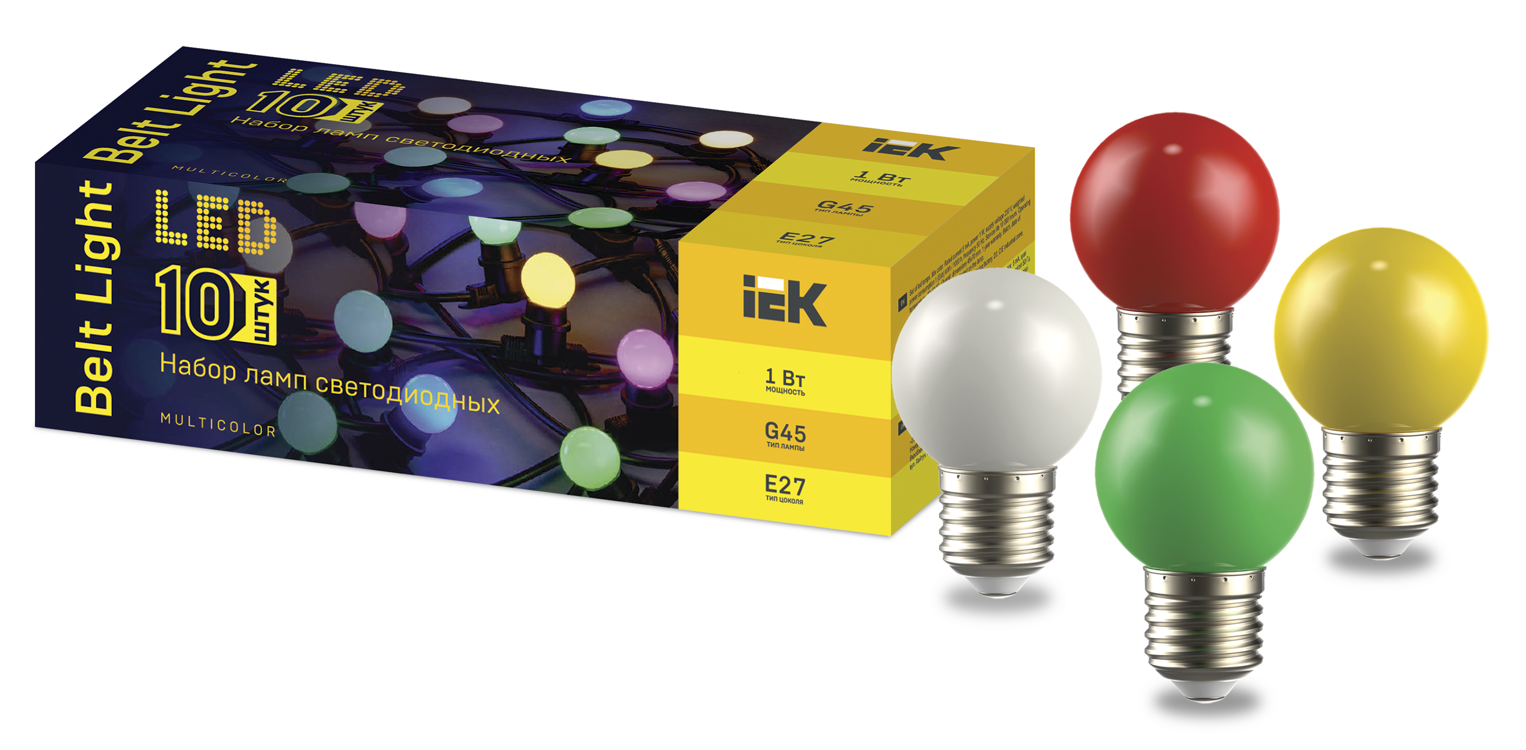 Наименование: LIGHTING Набор ламп светодиодных декоративных G45 шар 1Вт 230В MIX E27 10 шт IEK