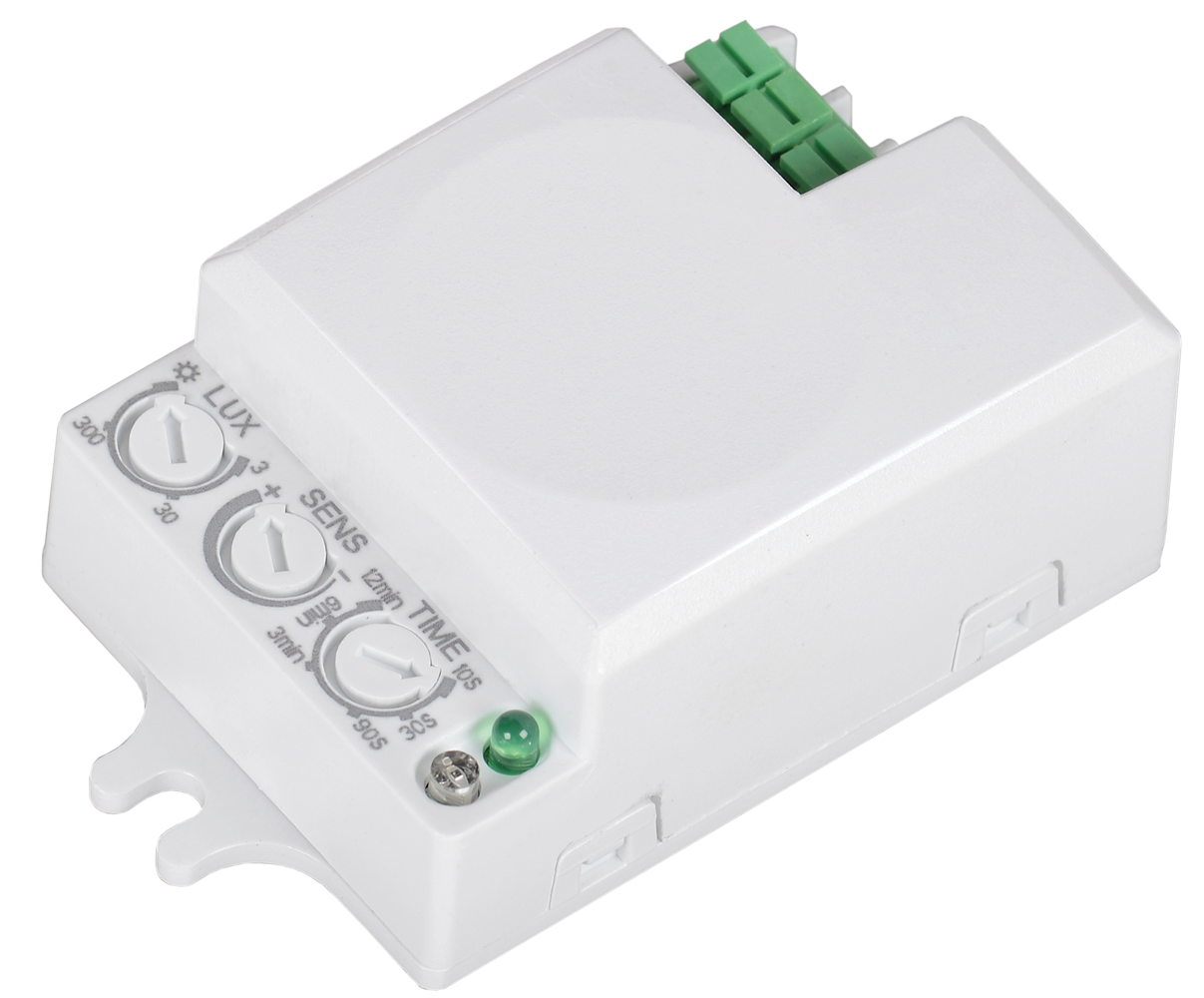 Описание: Микроволновый датчик движения излучает высокочастотные электромагнитные волны (частота волн обычно она составляет 5,8ГГц), которые отражаются от окружающих объектов и регистрируются сенсором. В случае обнаружения малейших изменений электромагнитных волн, микропроцессор датчика приводит в действие заданные настройки. Назначение: - для автоматического включения и отключения нагрузки в заданном интервале времени при появлении движущихся объектов в зоне обнаружения датчика. Применение: - управление уличным освещением; - управление внутренним освещением; - управление устройствами сигнализации.