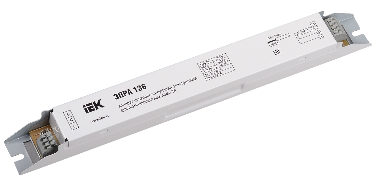 Наименование: ЭПРА 136 для линейных ЛЛ Т8 IEK