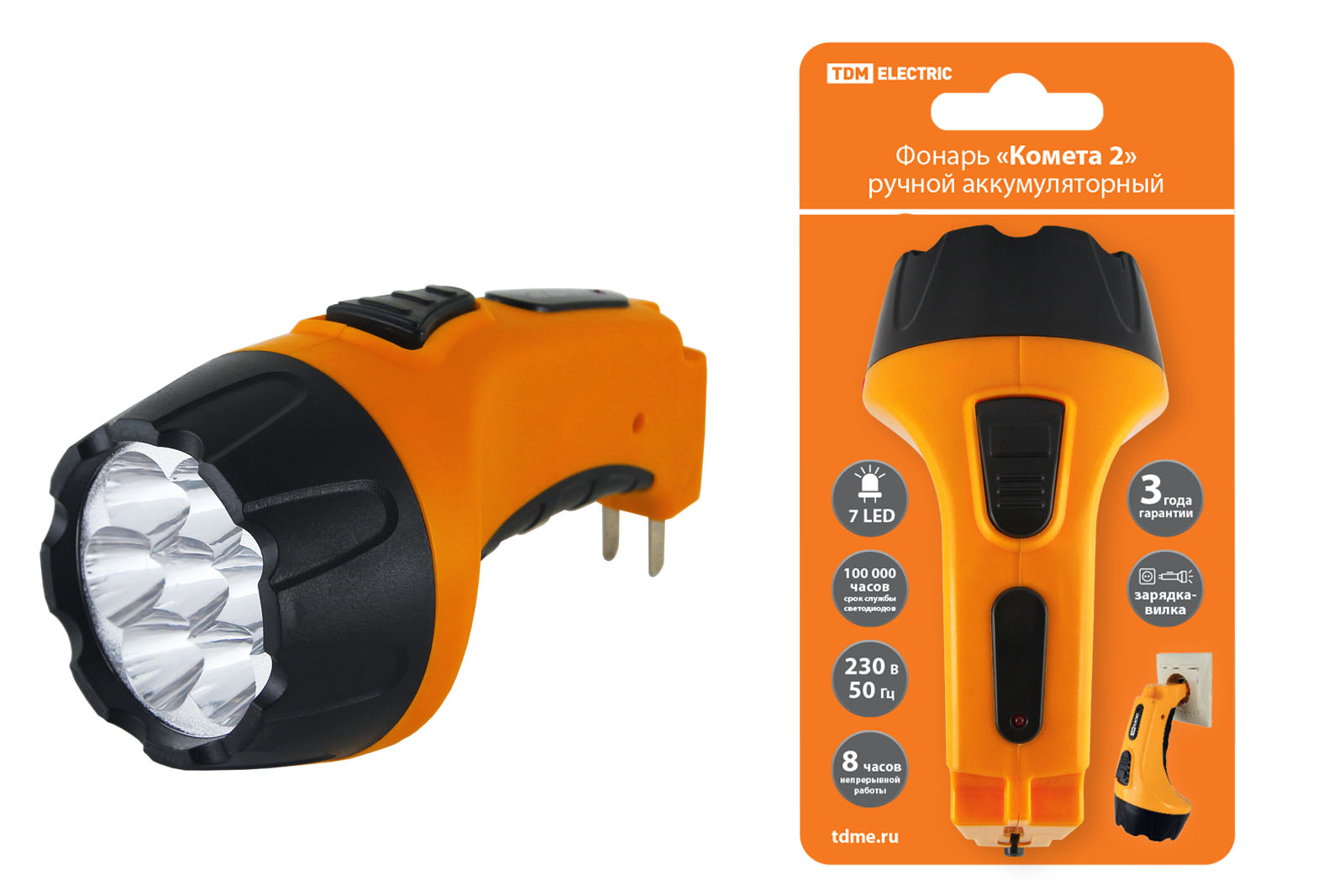 Наименование: Фонарь «Комета 2» ручной аккумуляторный, 7 светодиодов, 0,8Ач 230В вилка, TDM
