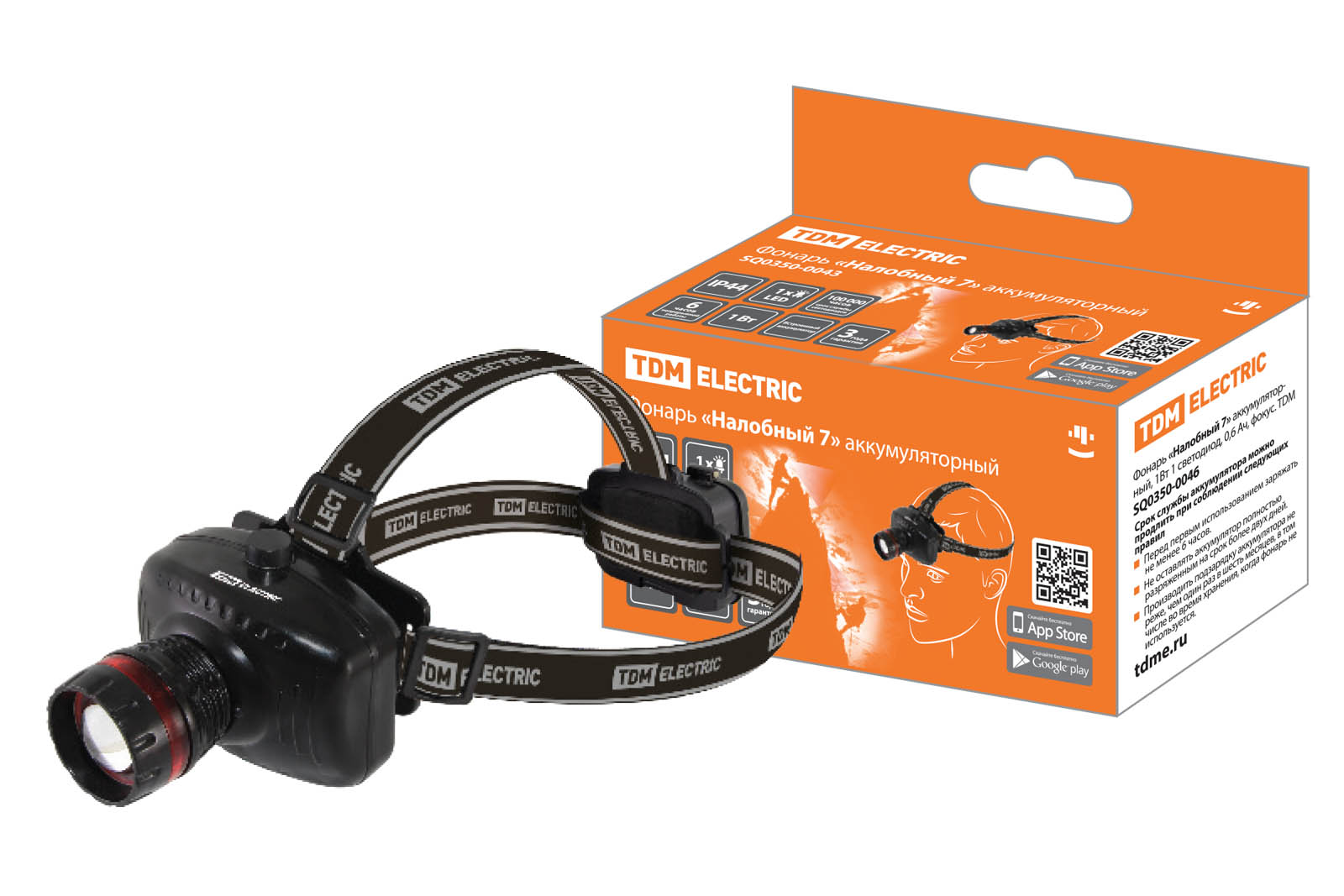 Наименование: Фонарь «Налобный 7» аккумуляторный, 1Вт 1 светодиод, 0,6 Ач, фокус. TDM
