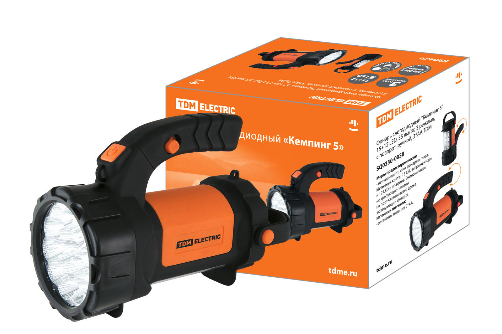 Наименование: Фонарь светодиодный "Кемпинг 5" 15+12 LED, 35 лм/Вт, 3 режима, с поворот. ручкой, 3*АА TDM