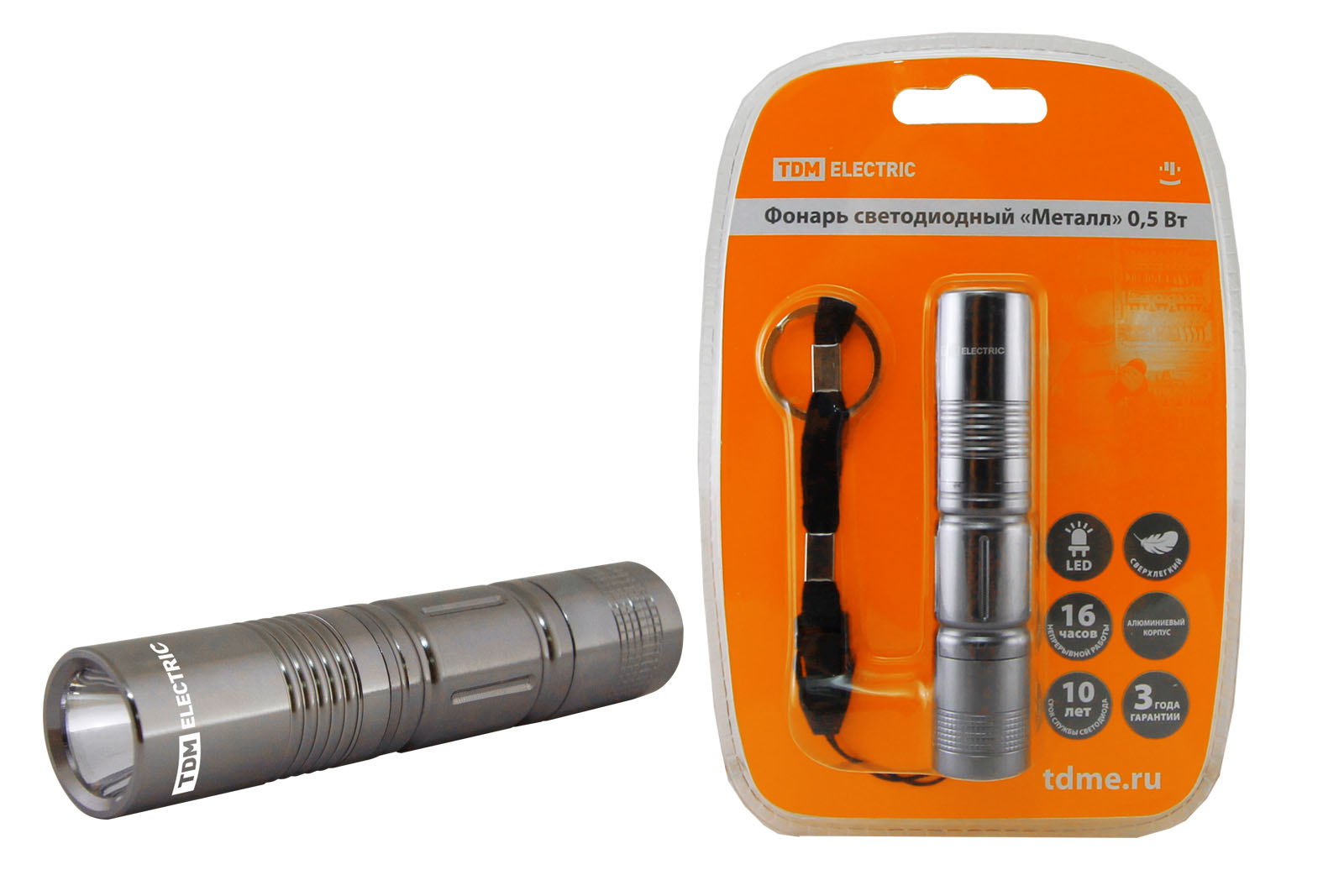 Наименование: Фонарь светодиодный "Металл", 0,5 Вт светодиод 30 лм/Вт, бат. 1*AA TDM