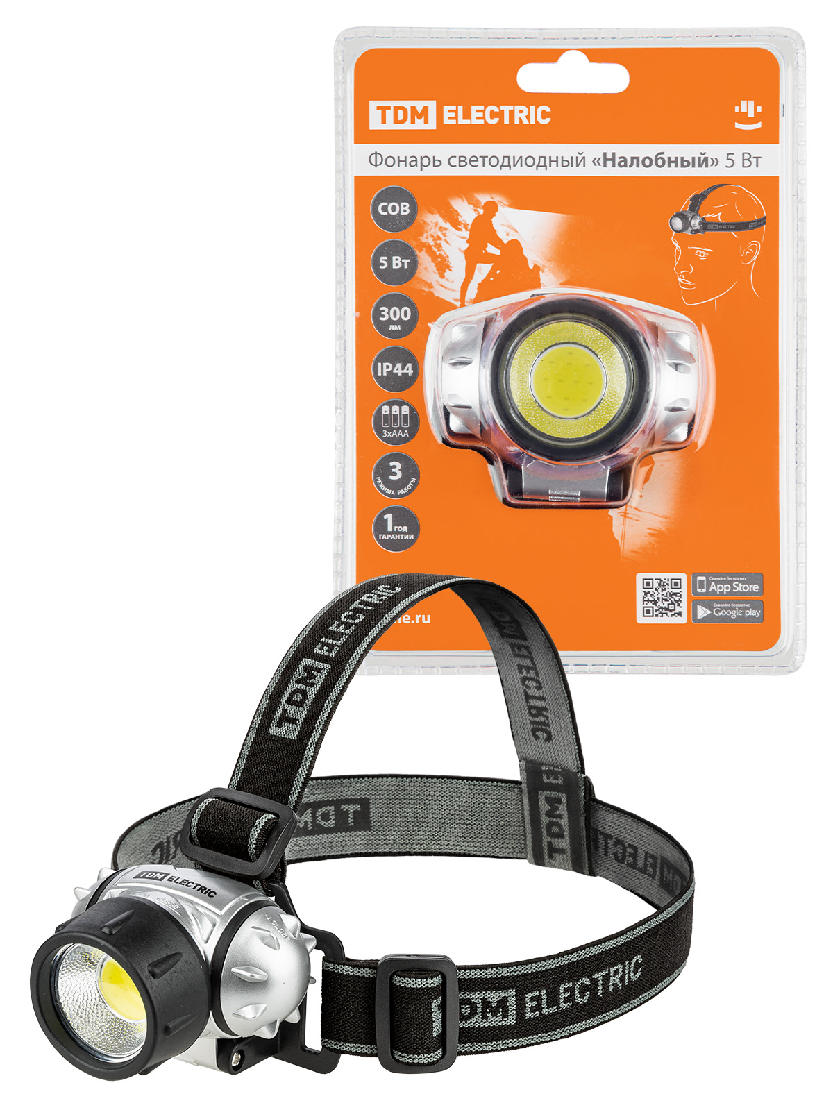 Наименование: Фонарь светодиодный "Налобный" 5 Вт COB, 300 лм, бат. 3*AAA TDM