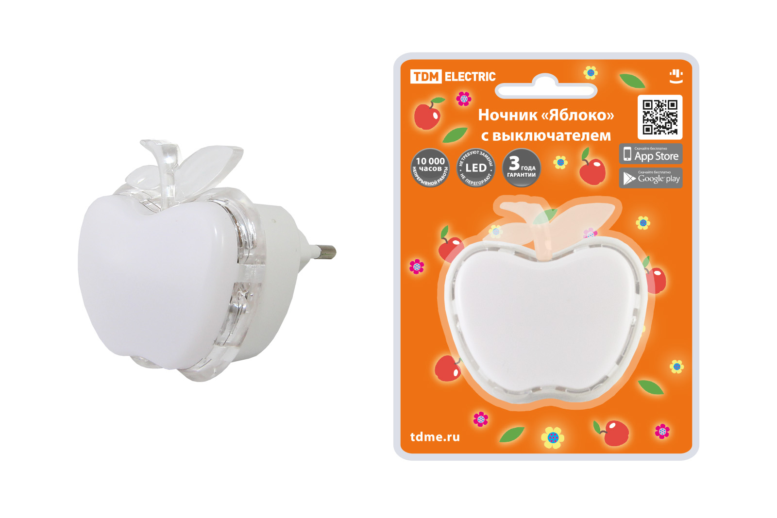 Наименование: Ночник "Яблоко" с выключателем, 0,3 Вт, 220 В TDM