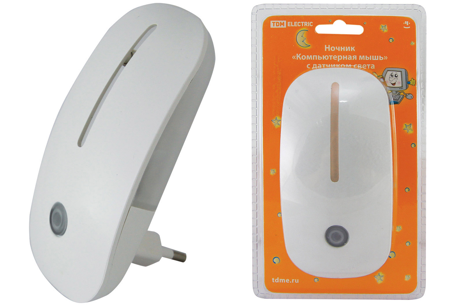 Наименование: Ночник "Компьютерная мышь" с датчиком света, светодиодный, 0,5Вт, 220 В TDM