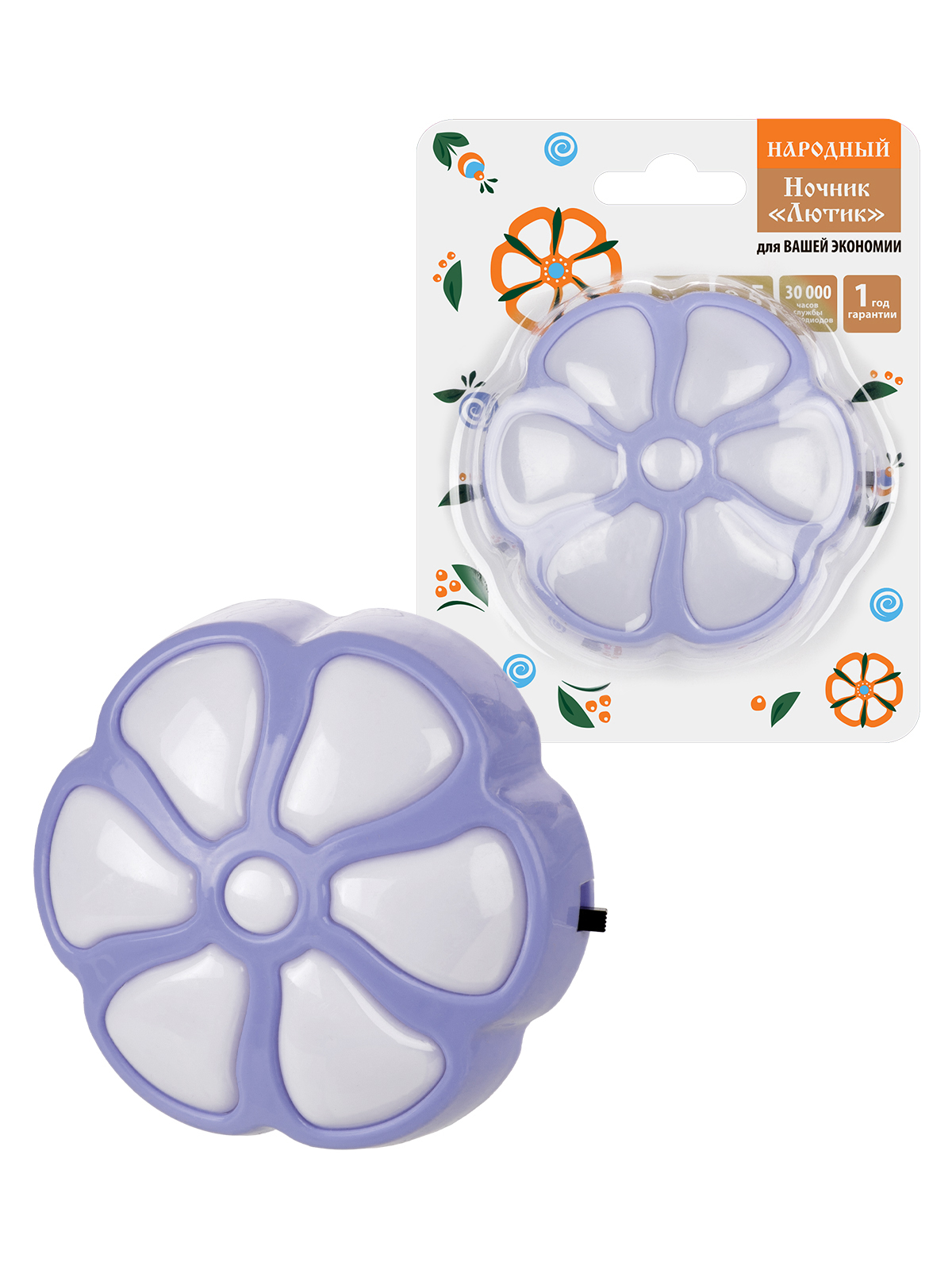 Наименование: Ночник "Лютик" с выключателем, 0,5 Вт, фиолетовый, 220 В Народный