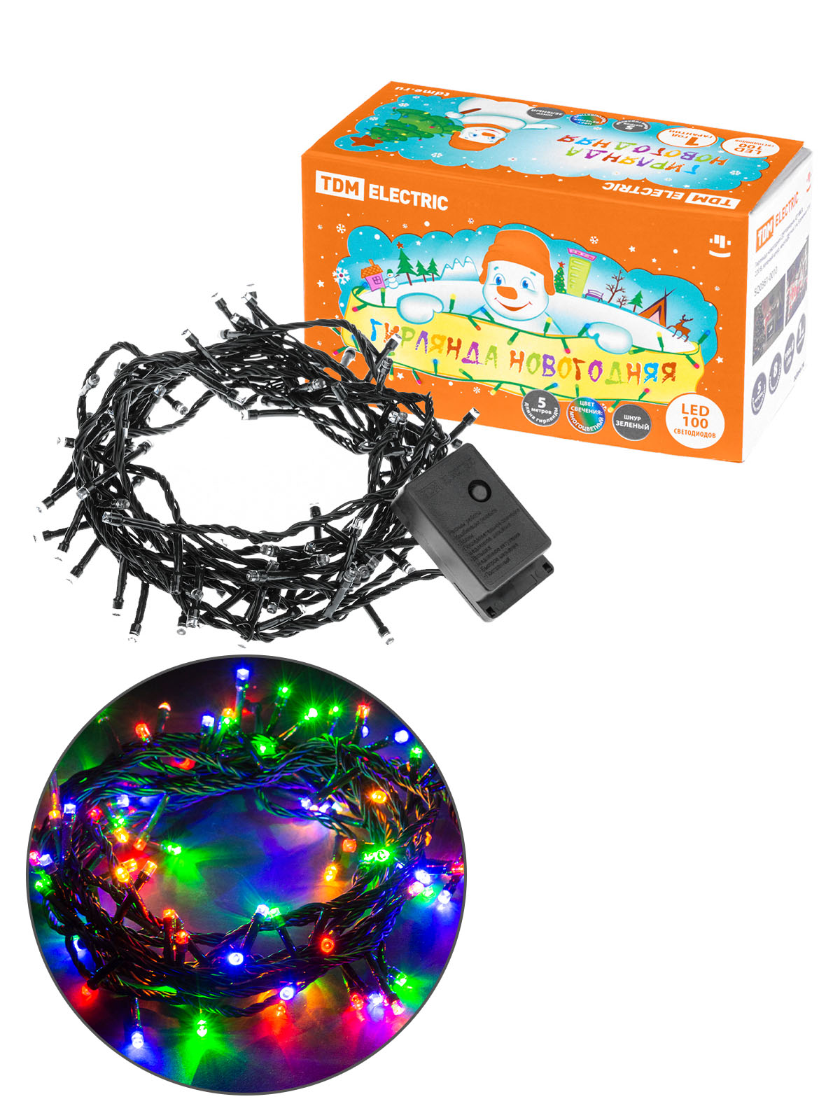 Наименование: Гирлянда новогодняя светодиодная, СГ 100 З, 220 В, зеленый шнур, многоцветная, 5 м, 8 режимов TDM