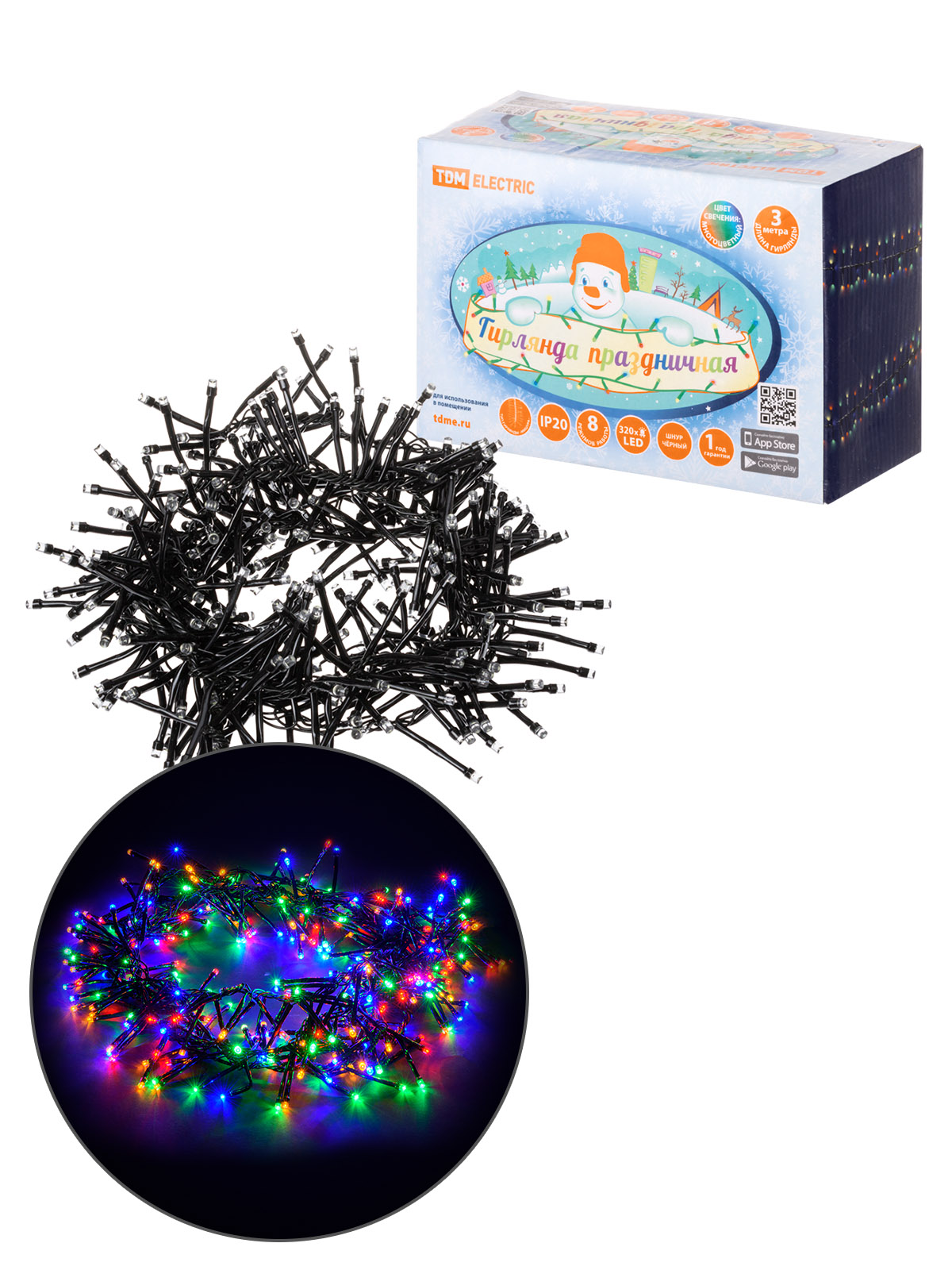 Наименование: Гирлянда светодиодная "Мишура" 3 м, 320LED, многоцветн., 8 режимов, 250 В, IP20, TDM