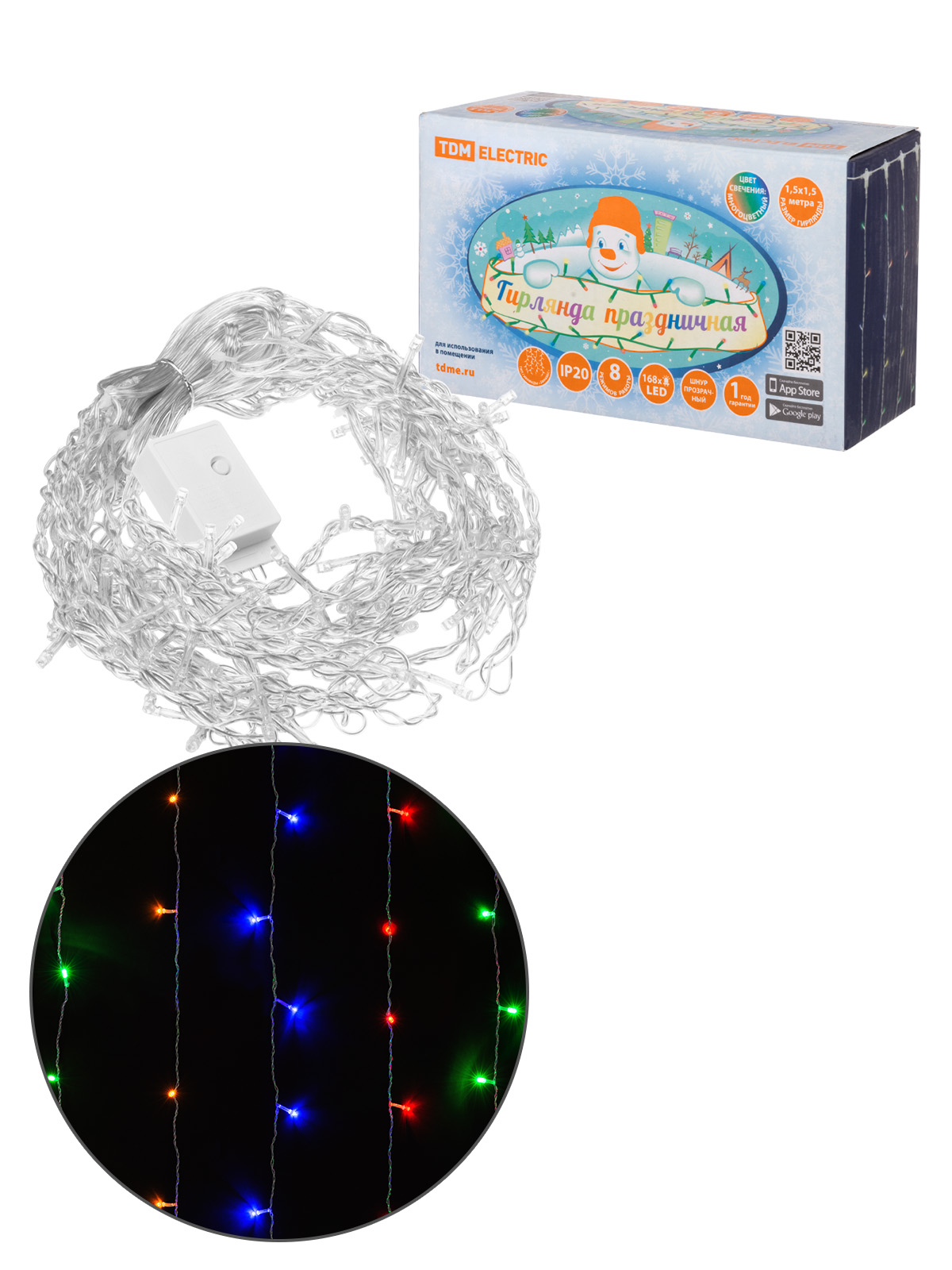 Наименование: Гирлянда светодиодная "Занавес" 1,5х1,5 м, 168LED, многоцветн., 8 режимов, 250 В, IP20, TDM
