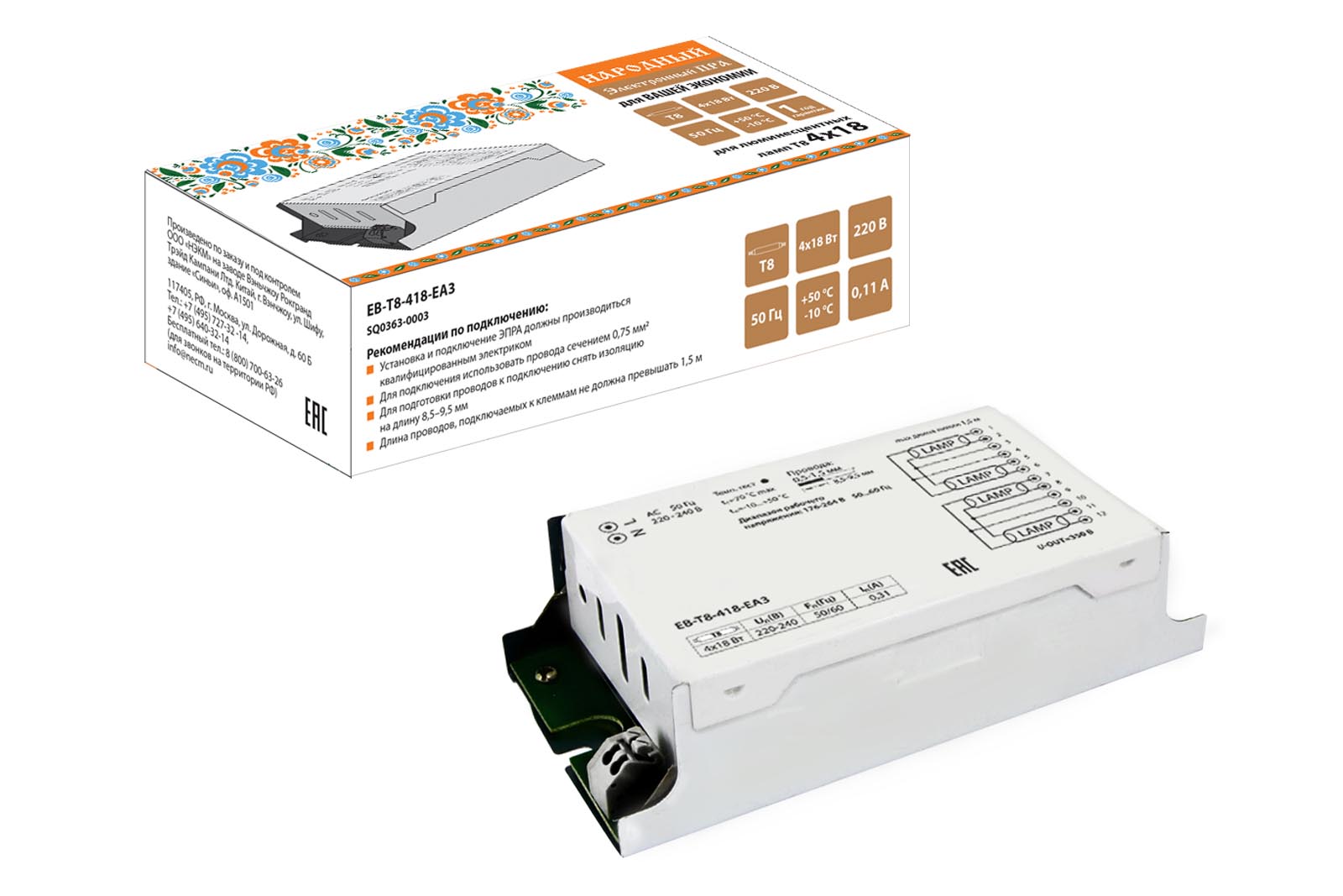 Наименование: Электронный пускорегулирующий аппарат EB-T8-418-EA3 нар.