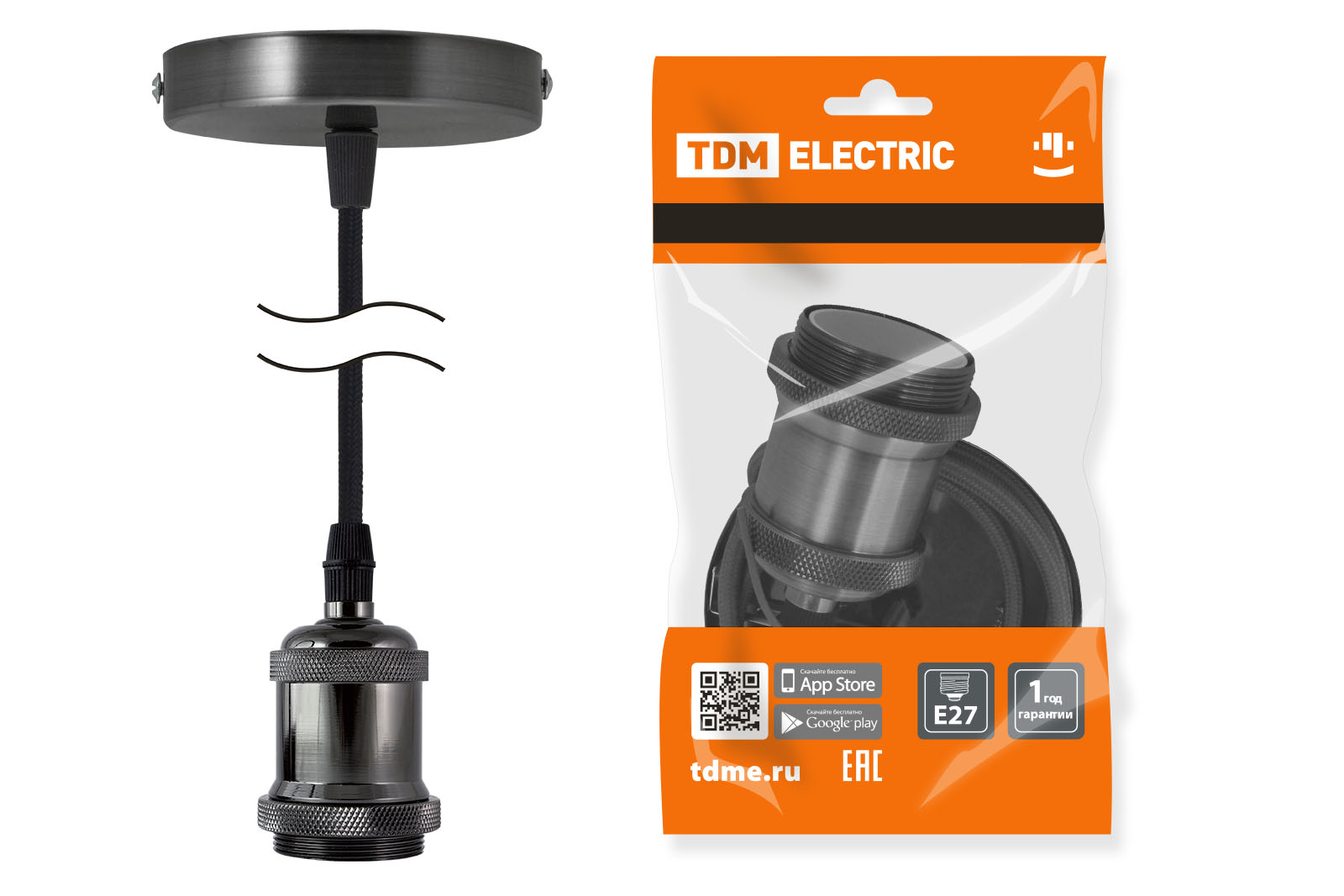 Наименование: Патрон Е27 с подвесом 1 м, металлический "Лофт", черный TDM