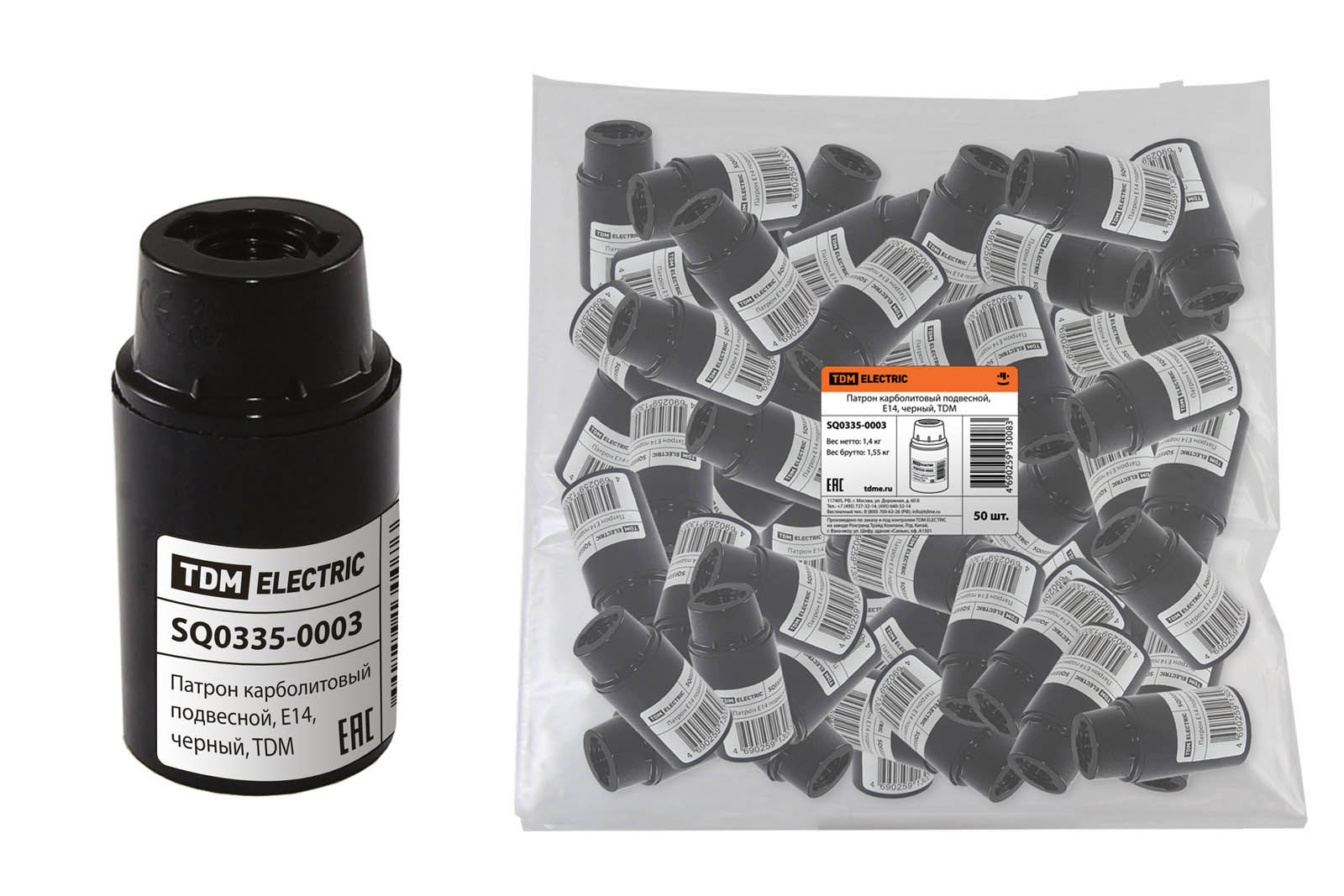Наименование: Патрон карболитовый подвесной, Е14, черный, TDM