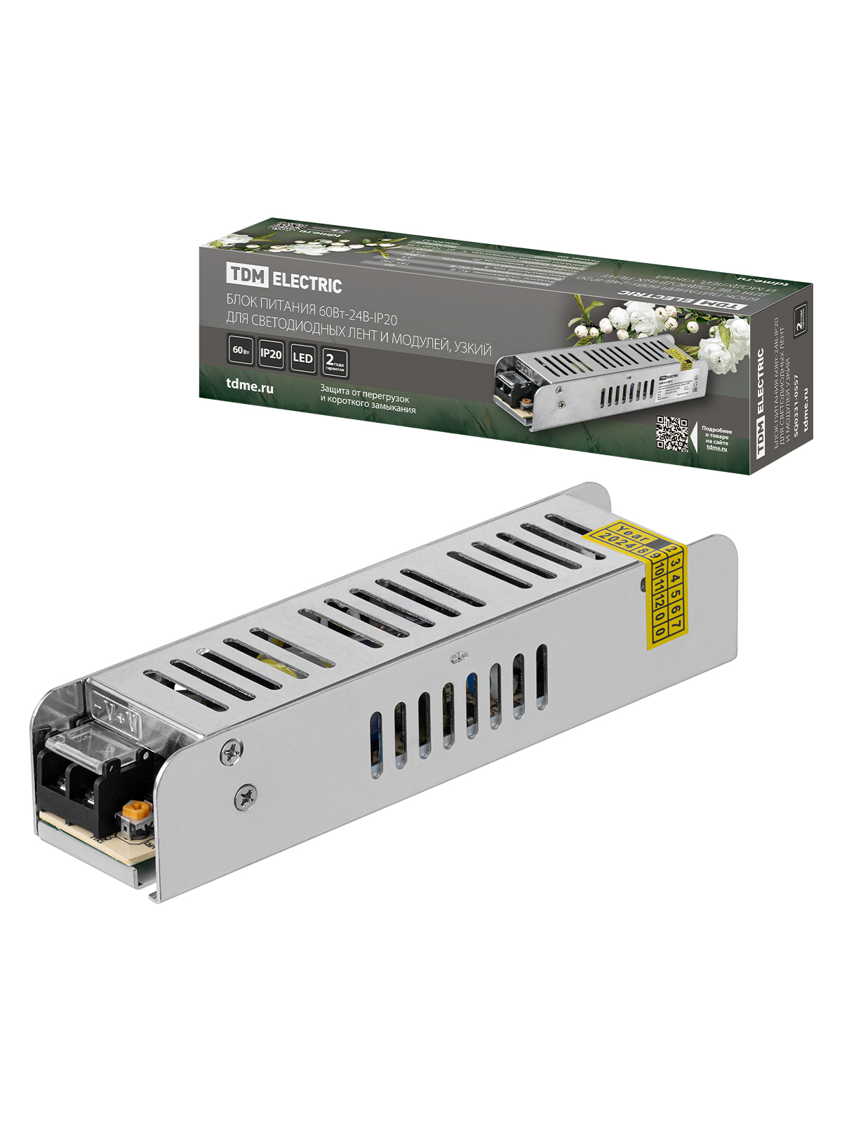 Наименование: Блок питания 60Вт-24В-IP20 для светодиодных лент и модулей, металл, узкий, TDM