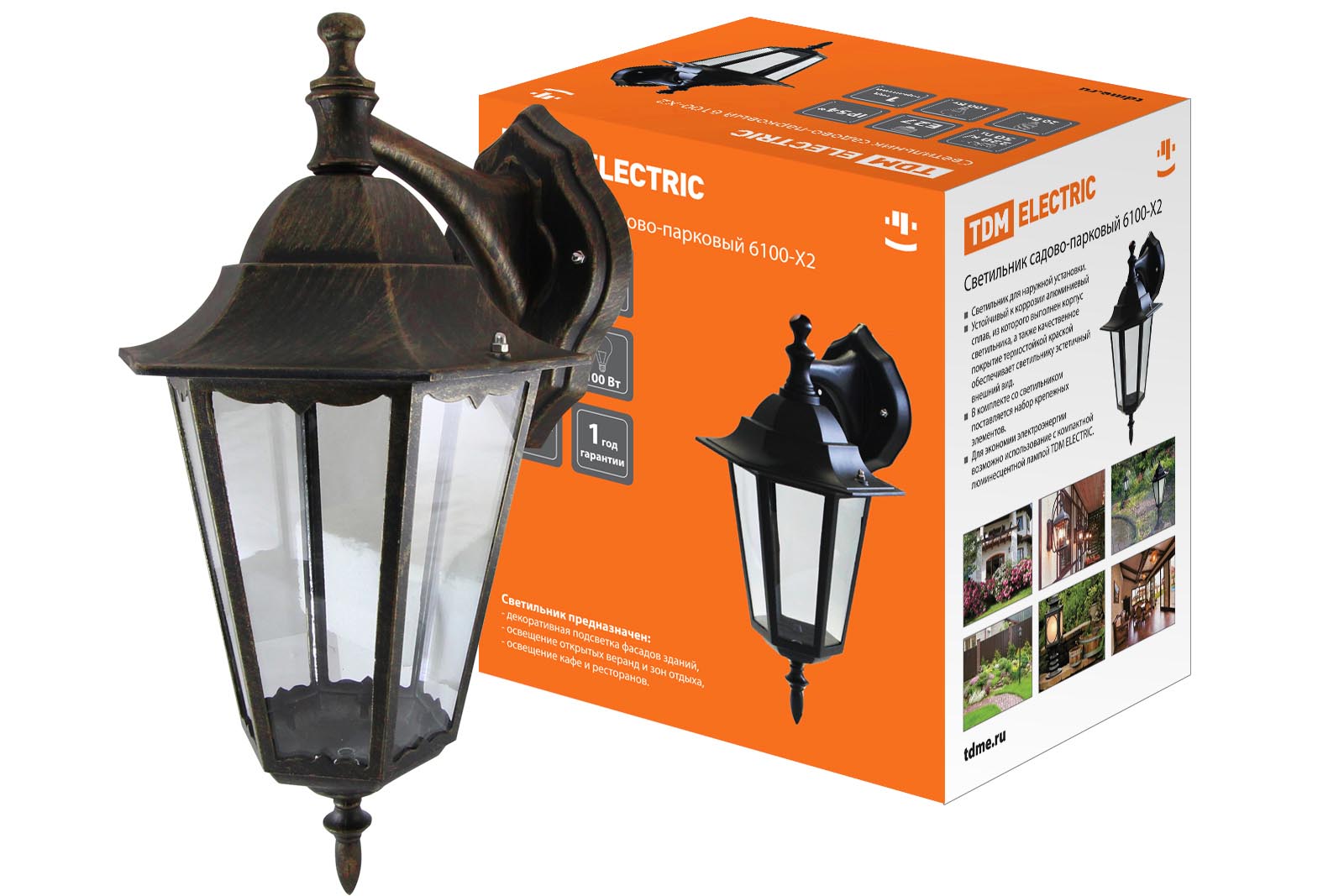 Наименование: Светильник 6100-12 садово-парковый шестигранник, 100Вт, вниз, бронза TDM