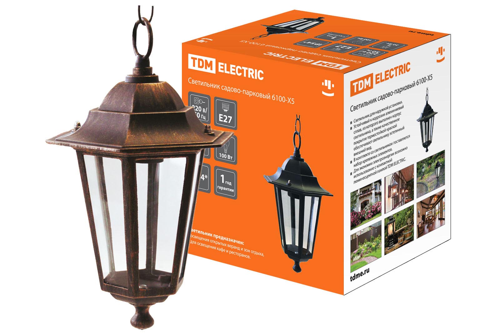 Наименование: Светильник 6100-15 садово-парковый шестигранник, 100Вт, подвес, бронза TDM