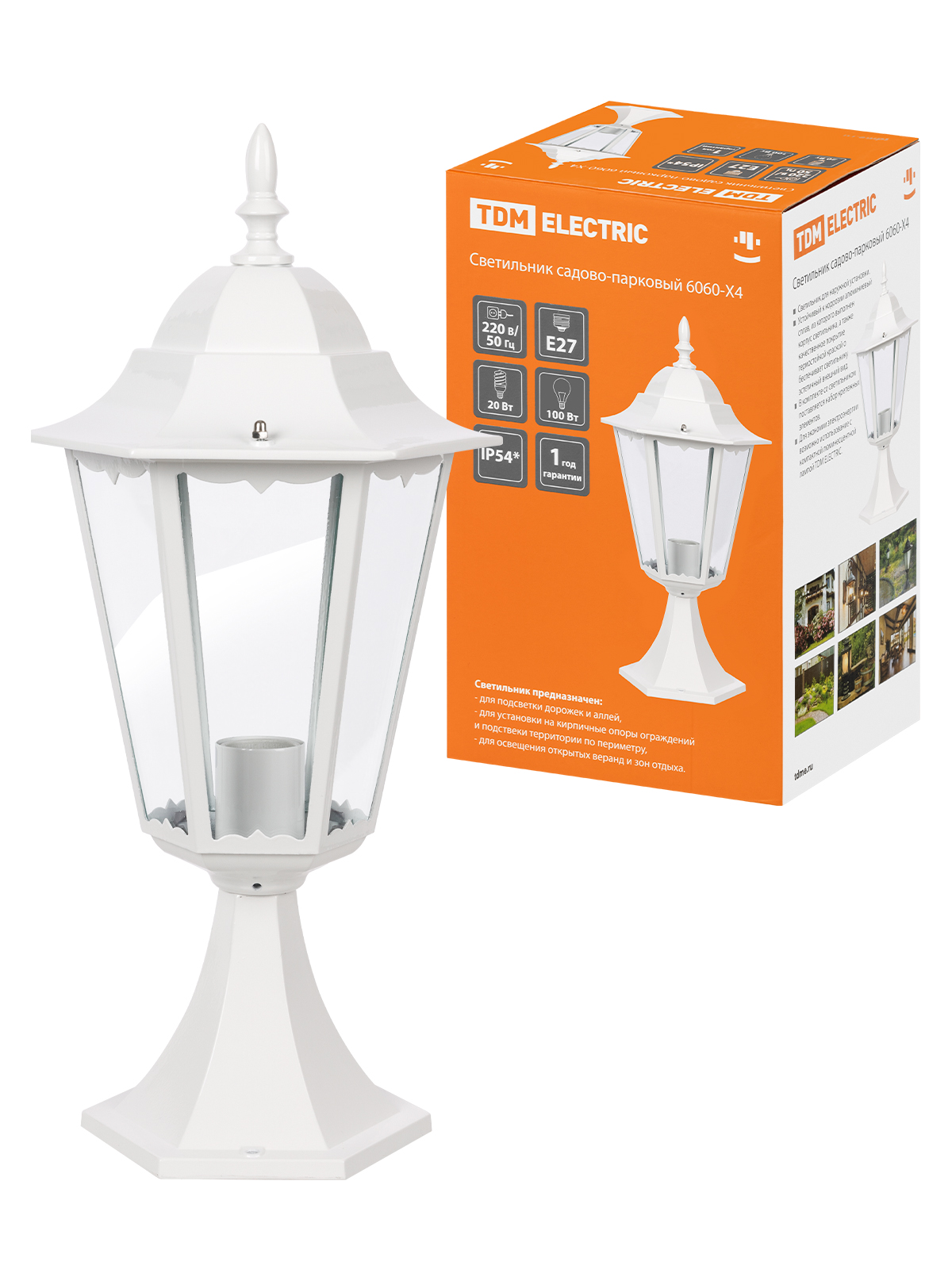Наименование: Светильник 6100-24 садово-парковый шестигранник, 100Вт, стойка, белый