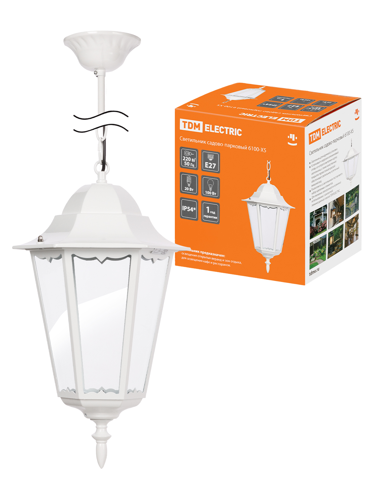 Наименование: Светильник 6100-25 садово-парковый шестигранник, 100Вт, подвес,белый