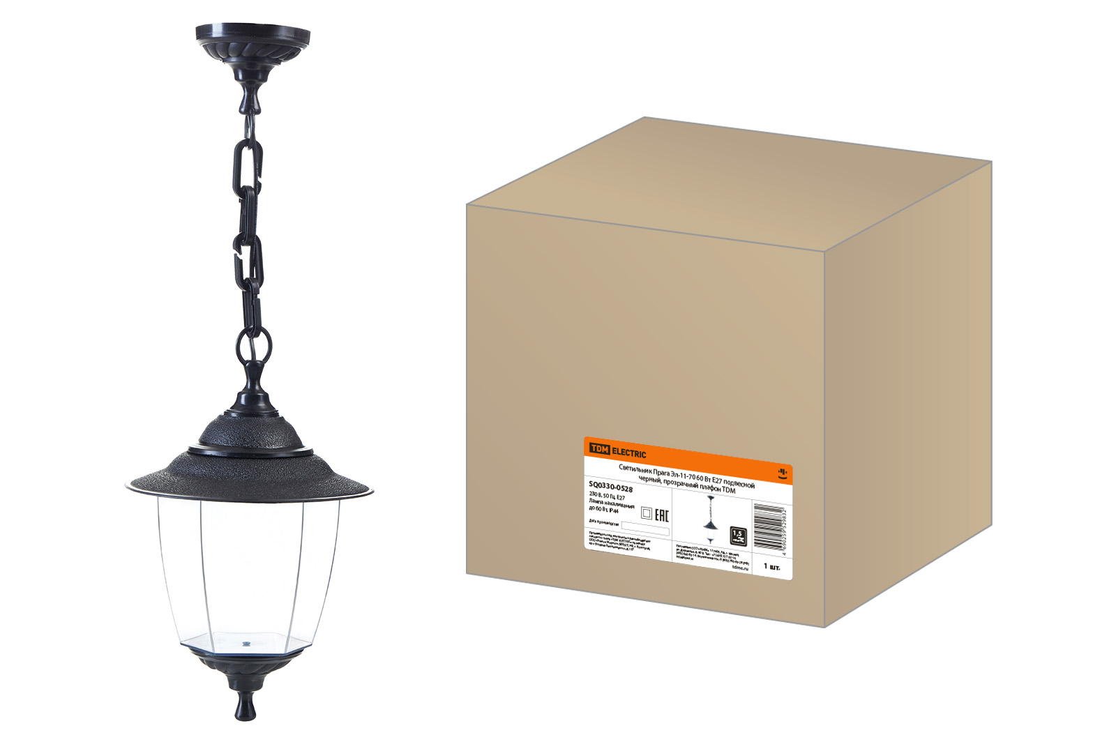 Наименование: Светильник Прага Эл-11-70 60 Вт Е27 подвесной черный, прозрачный плафон TDM