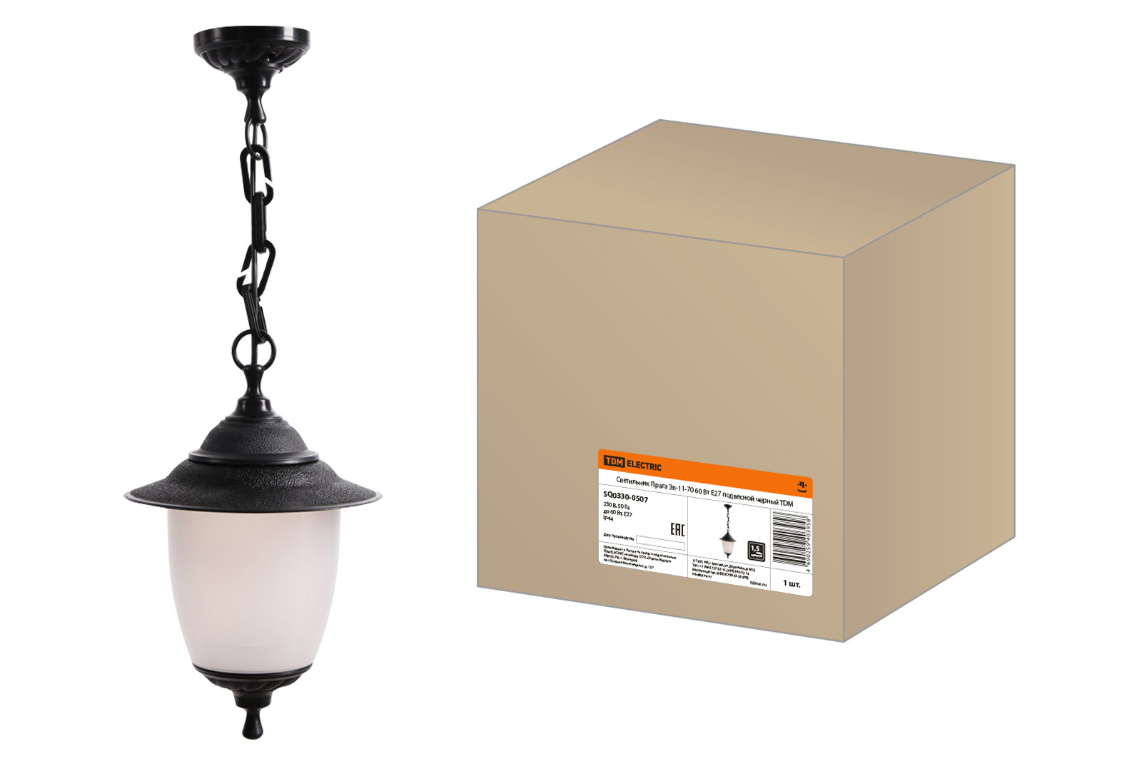 Светильник Прага Эл-11-70 60 Вт Е27 подвесной черный TDM