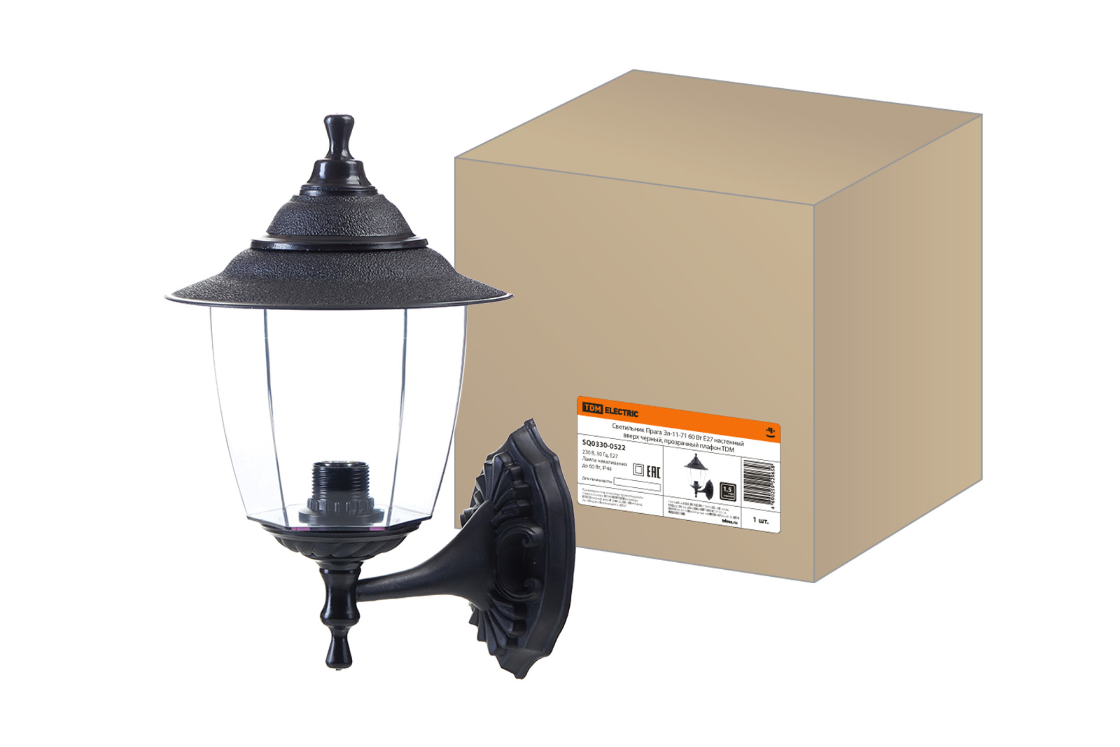 Наименование: Светильник Прага Эл-11-71 60 Вт Е27 настенный вверх черный, прозрачный плафон TDM
