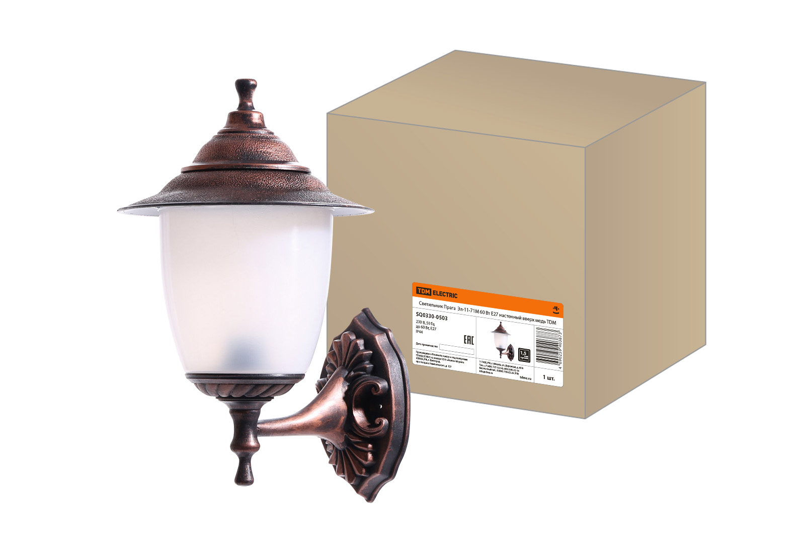 Наименование: Светильник Прага Эл-11-71М 60 Вт Е27 настенный вверх медь TDM