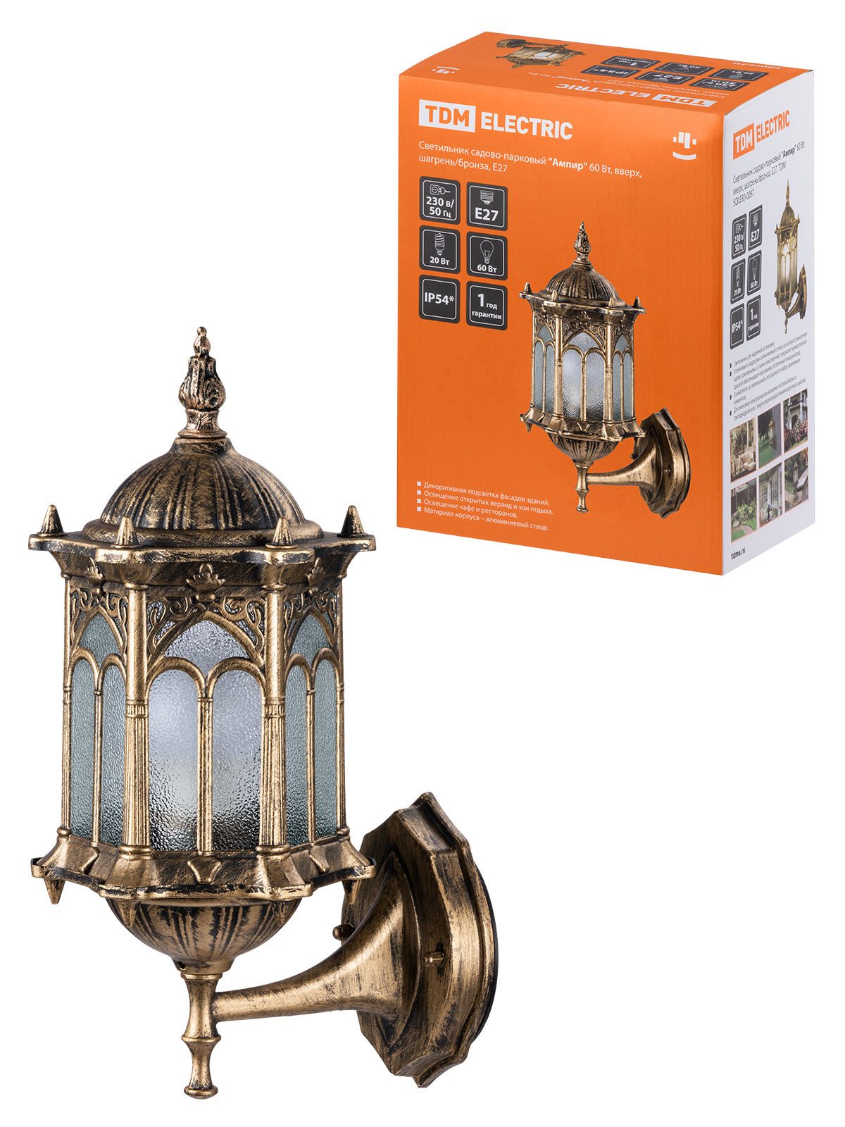 Наименование: Светильник садово-парковый "Ампир" 60 Вт, вверх, шагрень/бронза Е27, TDM