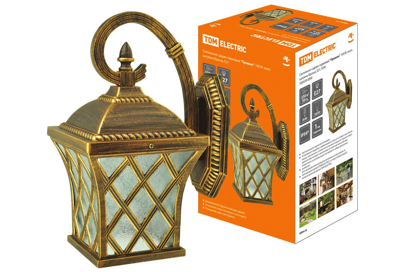 Наименование: Светильник садово-парковый "Прованс" 100 Вт, вниз, шагрень/бронза Е27, TDM