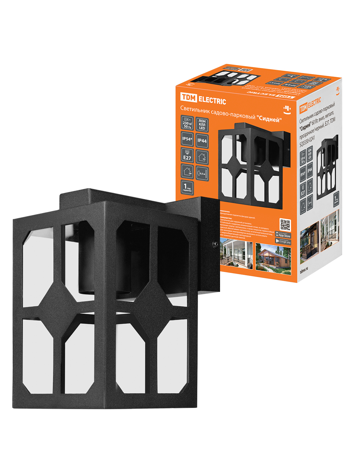 Наименование: Светильник садово-парковый "Сидней" 60 Вт, вниз, металл, прозрачное/черный, Е27, TDM