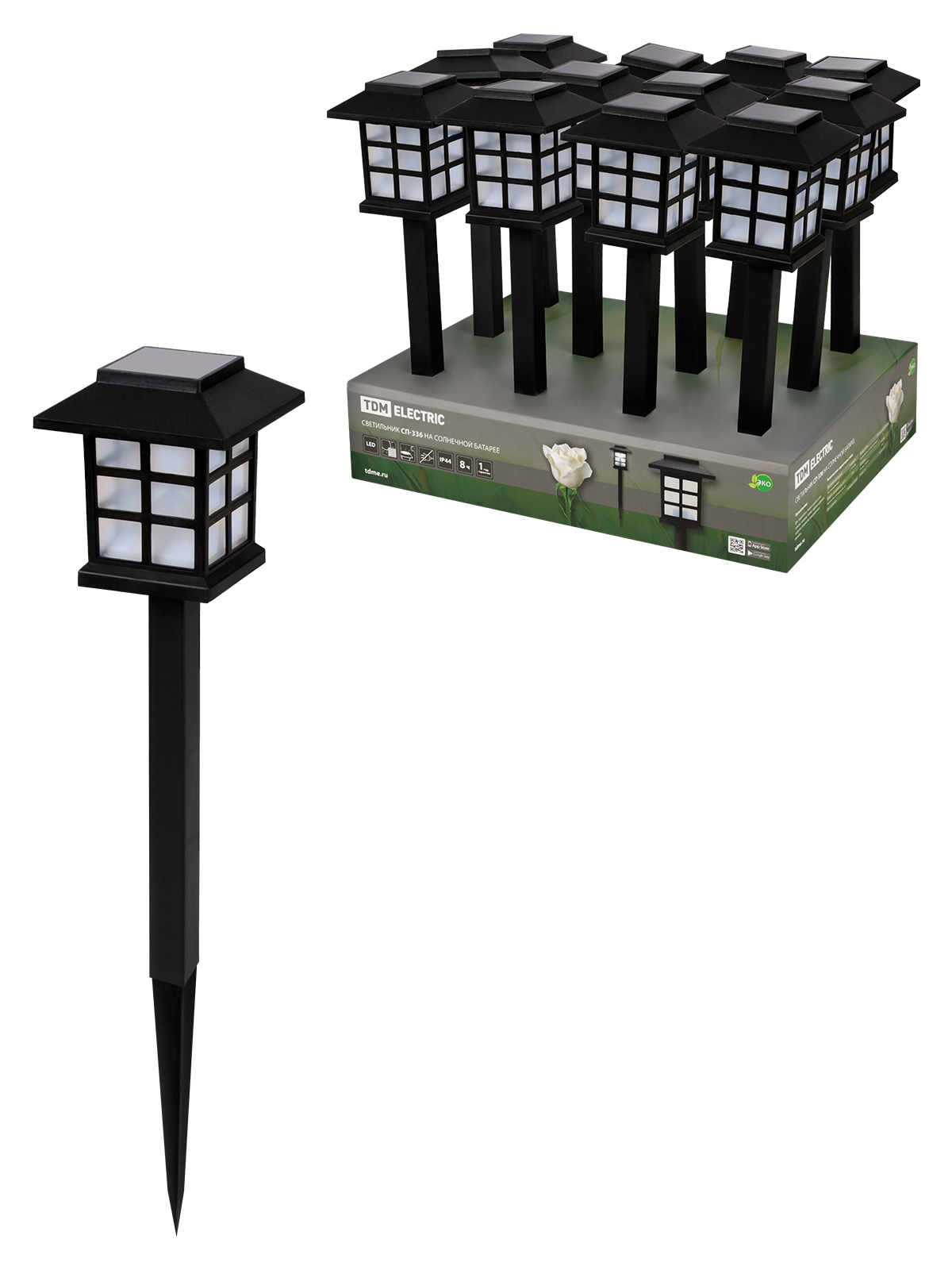 Наименование: Светильник СП-336 на солнечной батарее, 8,5х8,5х36 см, пластик, черный, ДБ, TDM