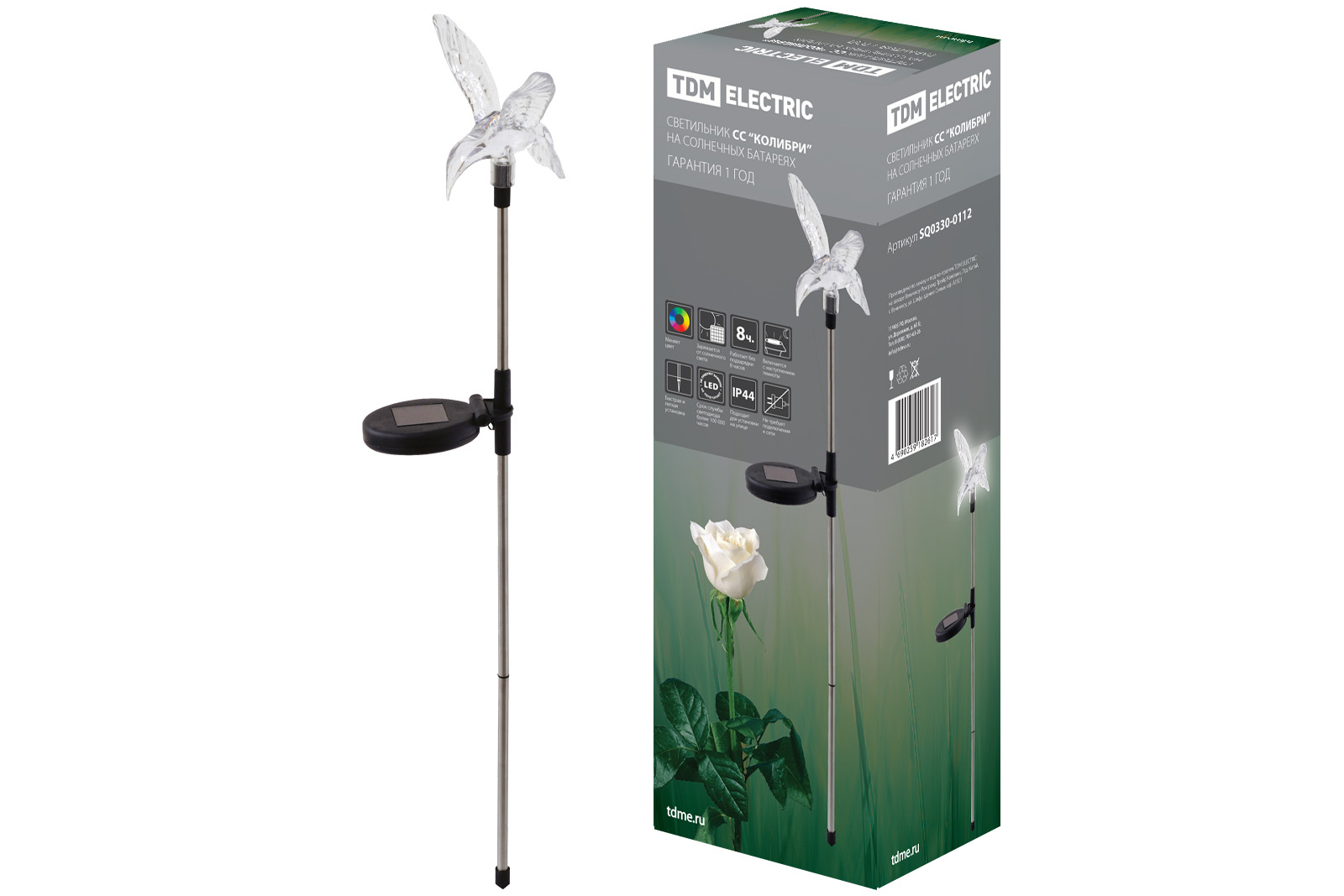 Наименование: Светильник СС "Колибри" на солнечных батареях, сталь, меняет цвет, TDM