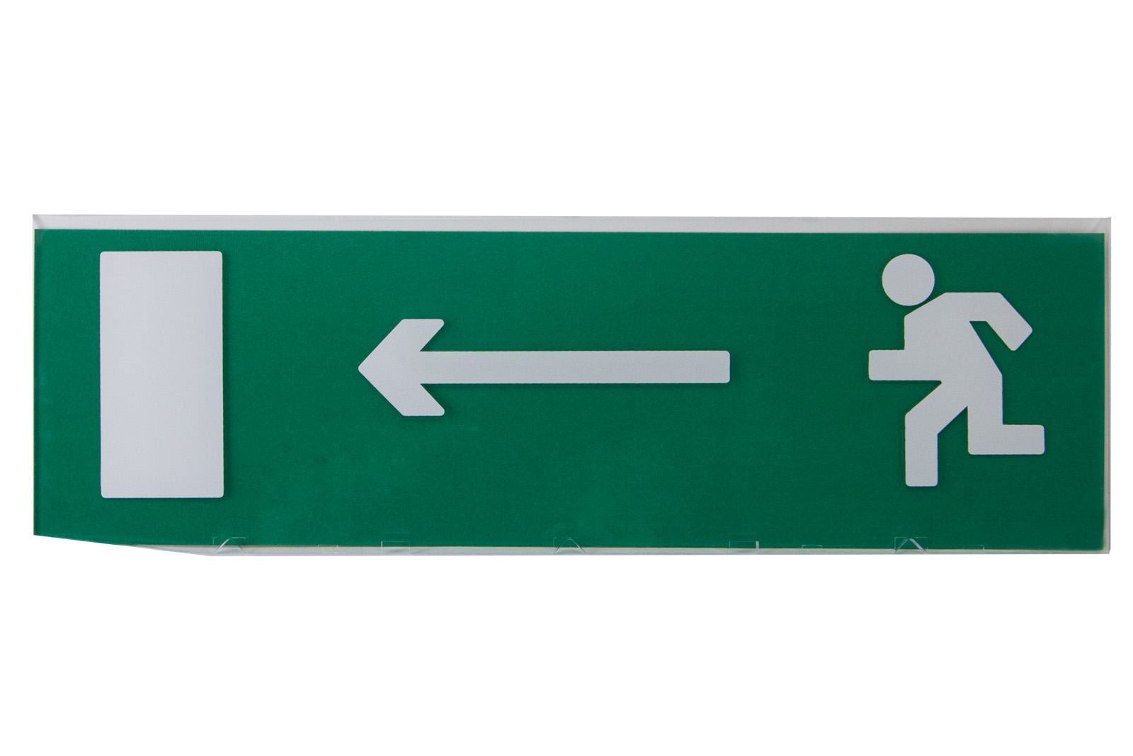Сменное табло "Направление к эвакуационному выходу налево" зеленый фон для "Топаз" TDM
