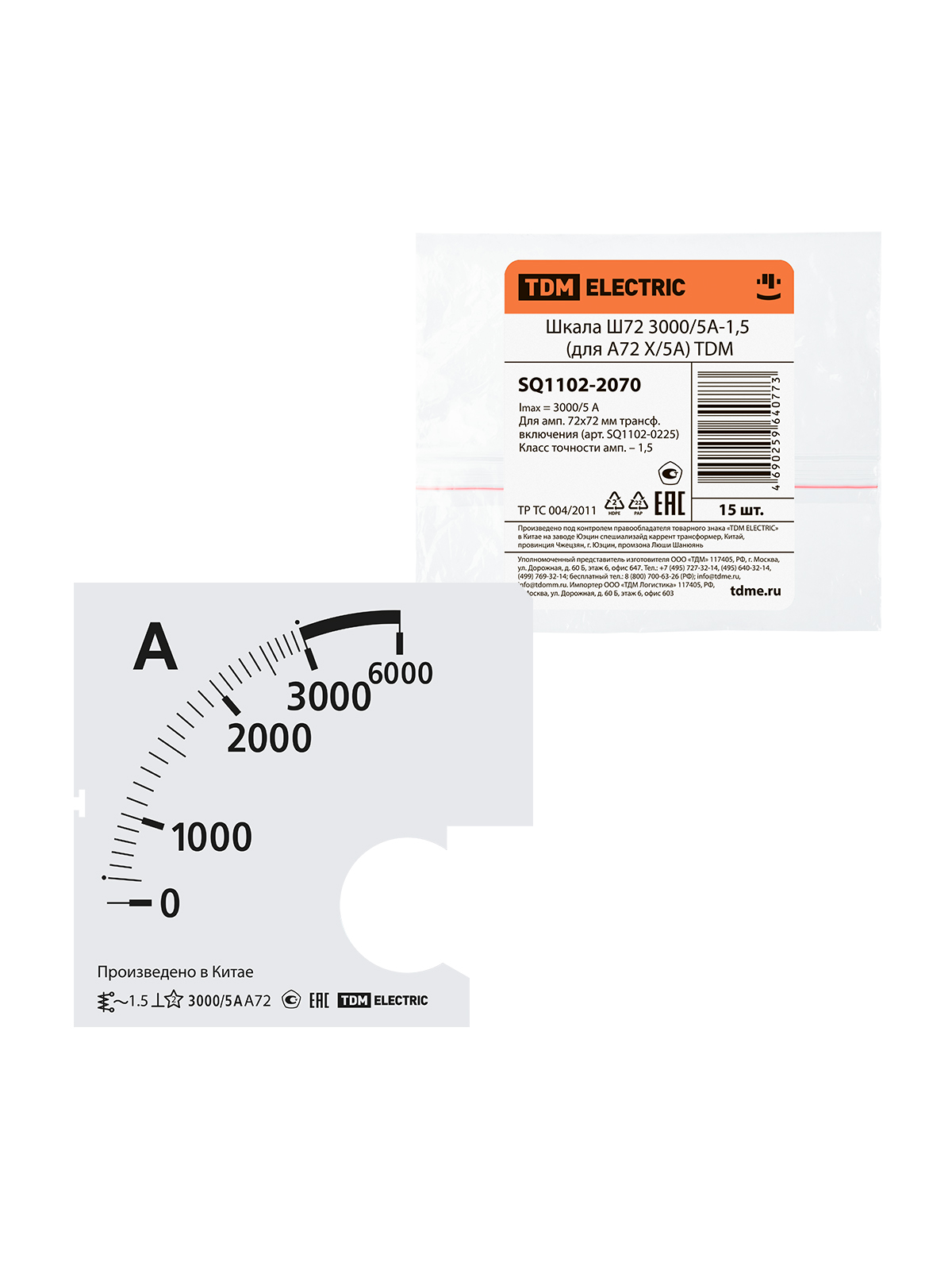 Наименование: Шкала Ш72 3000/5А-1,5 (для А72 Х/5А) TDM