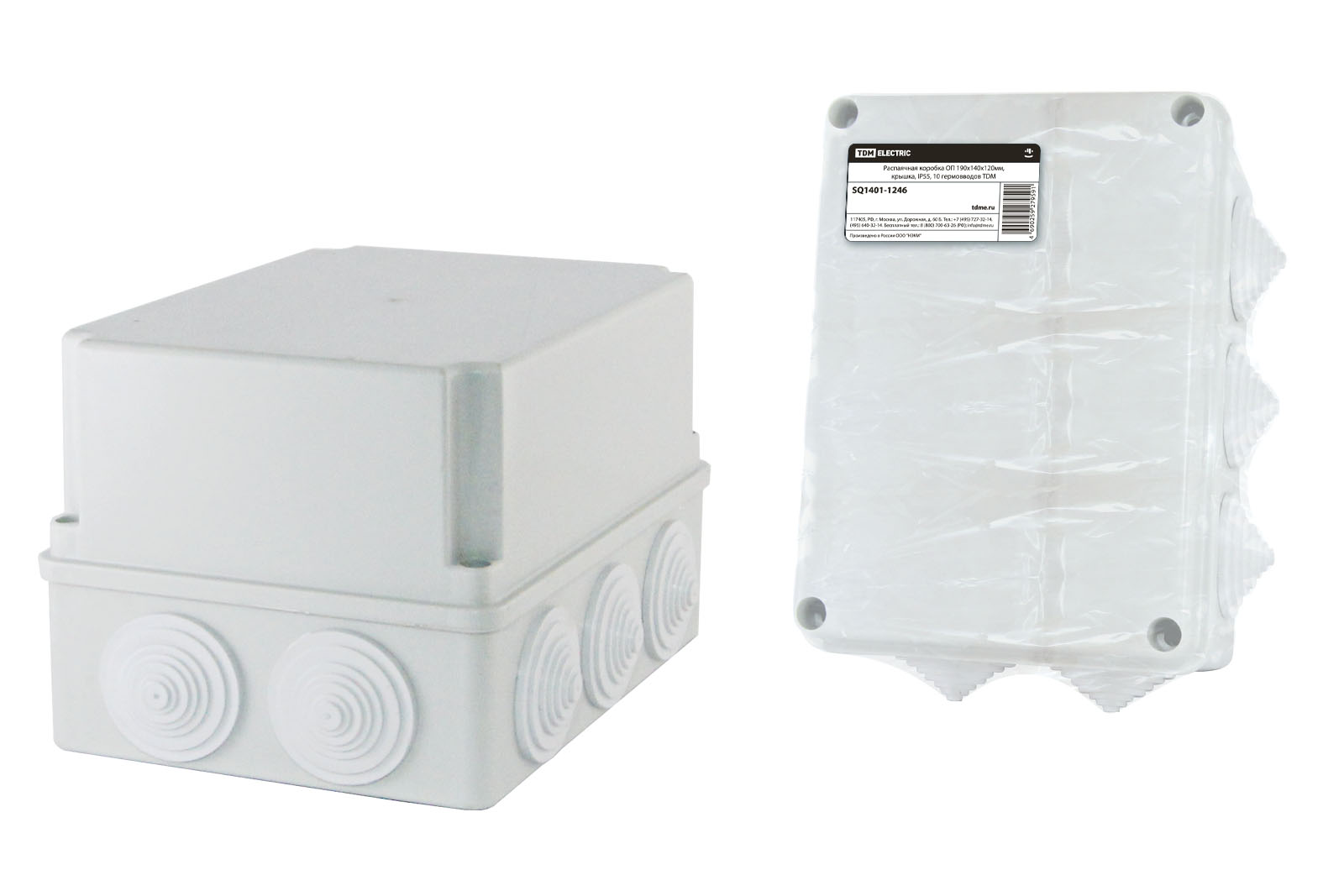 Наименование: Распаячная коробка ОП 190х140х120мм, крышка, IP55, 10 гермовводов, инд. штрихкод, TDM