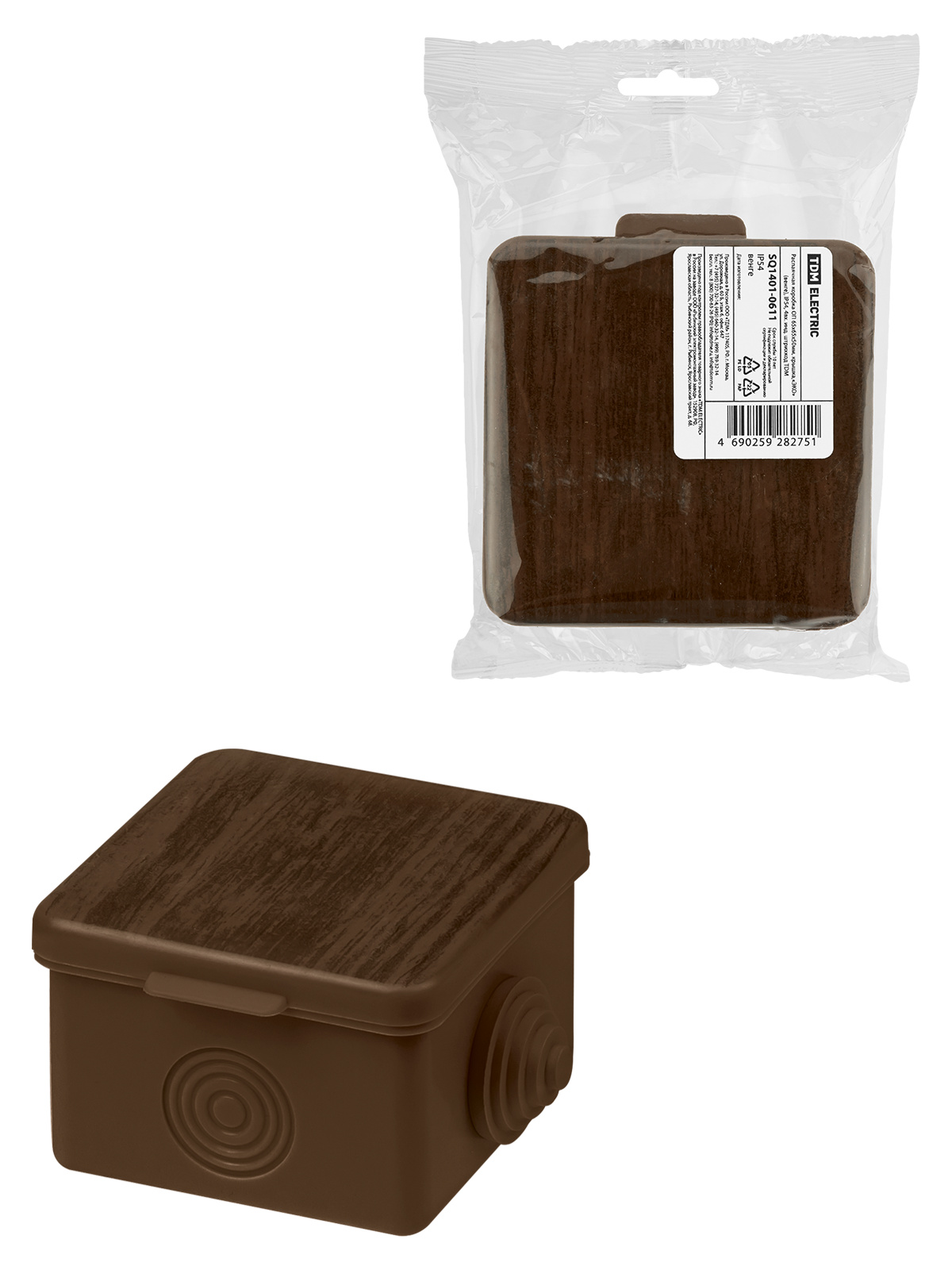 Распаячная коробка ОП 65х65х50мм, крышка, "ЭКО" (венге), IP54, 4вх. инд. штрихкод TDM