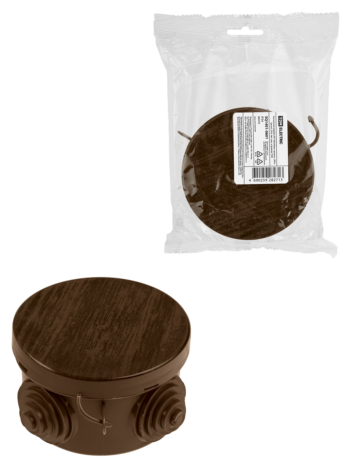 Распаячная коробка ОП D65х40мм, крышка , "ЭКО" (венге), IP54, 4вх. инд. штрихкод TDM