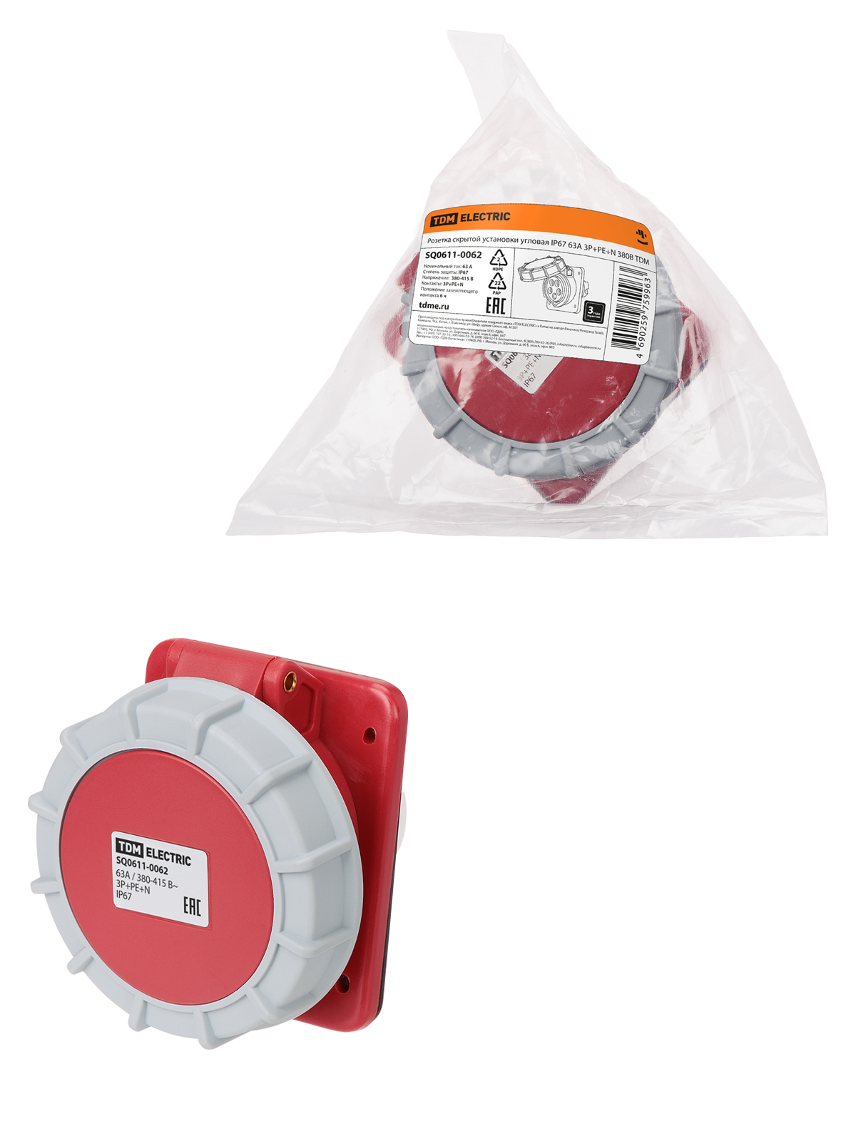 Наименование: Розетка скрытой установки угловая IP67 63А 3Р+РЕ+N 380В TDM