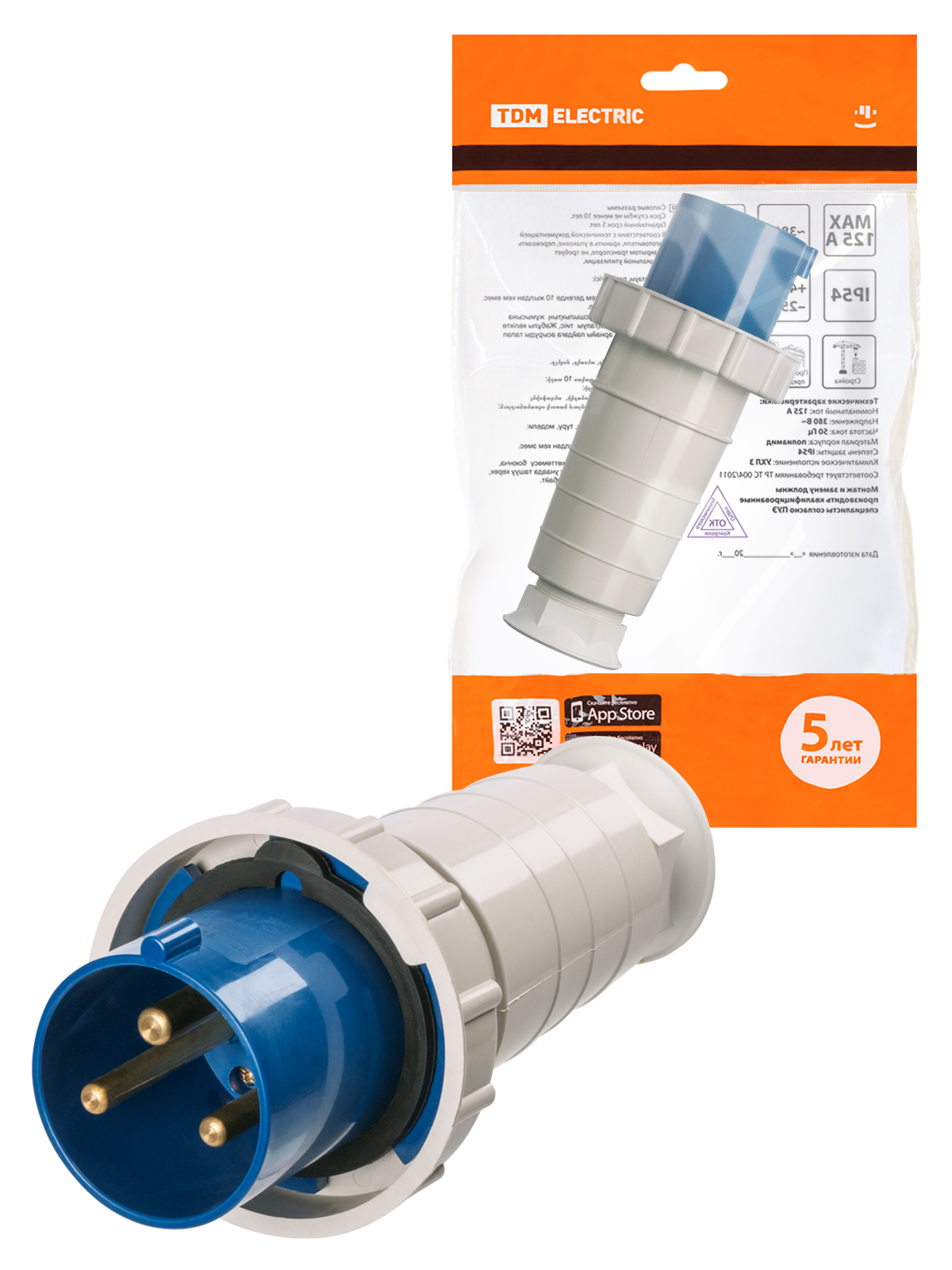 Наименование: Вилка 033 2Р+РЕ 63А 220В IP54 TDM