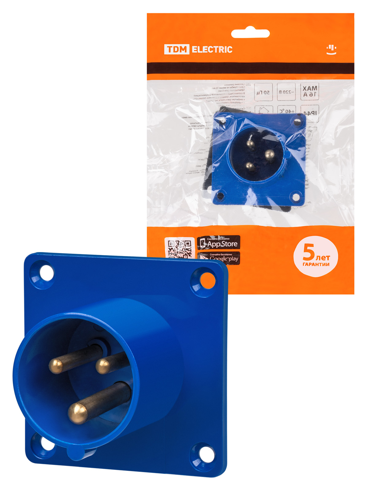 Наименование: Вилка 613 скрытая 2Р+РЕ 16А 220В IP44 TDM