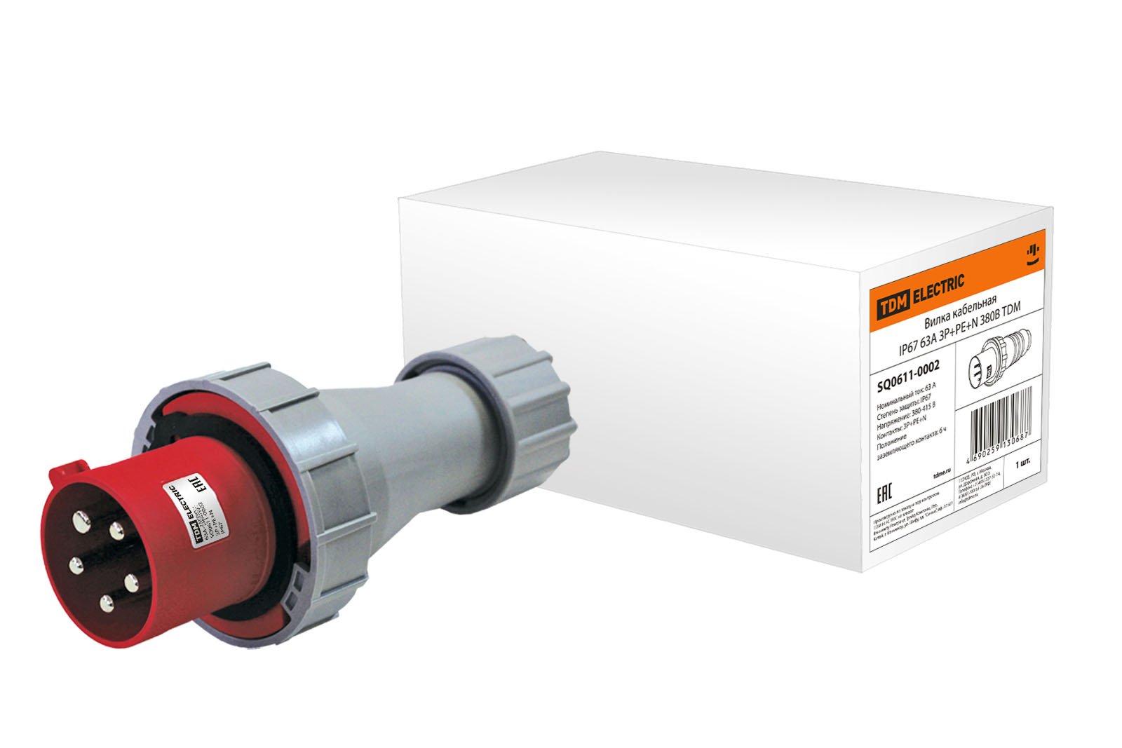 Наименование: Вилка кабельная IP67 63А 3Р+РЕ+N 380В TDM