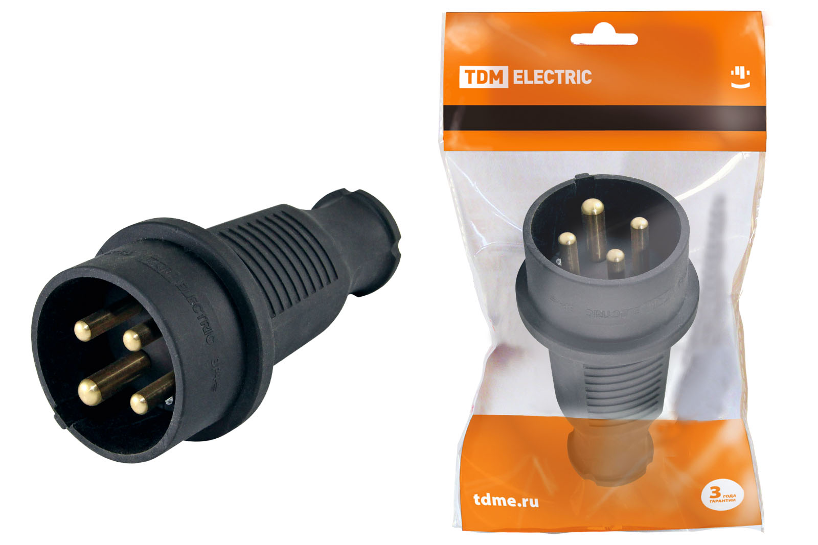 Наименование: Вилка прямая каучук 3Р+РЕ 32А 380В IP44 TDM