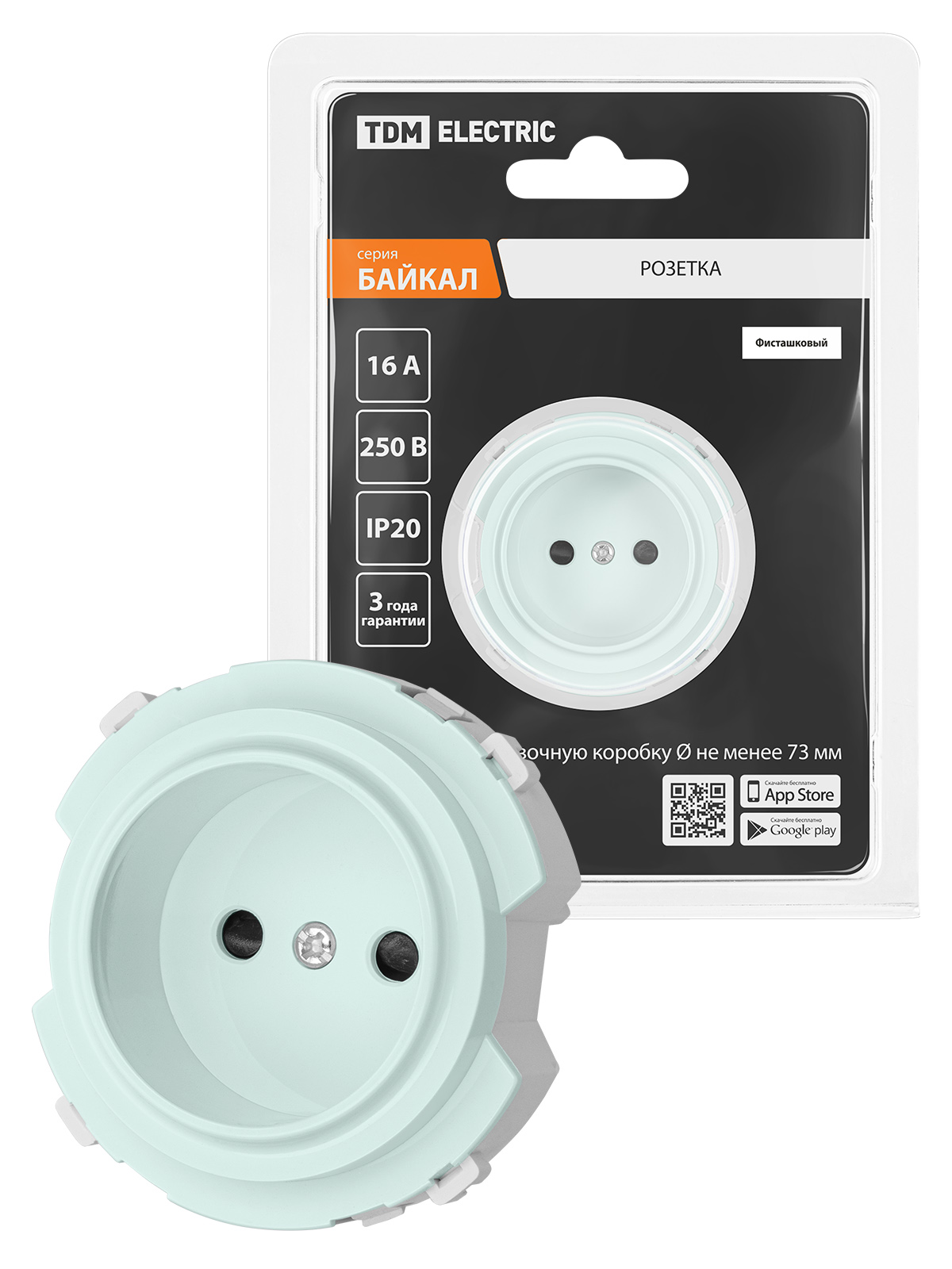 Розетка 2П 16А 250В с защ. шт. фисташковая, "Байкал" TDM