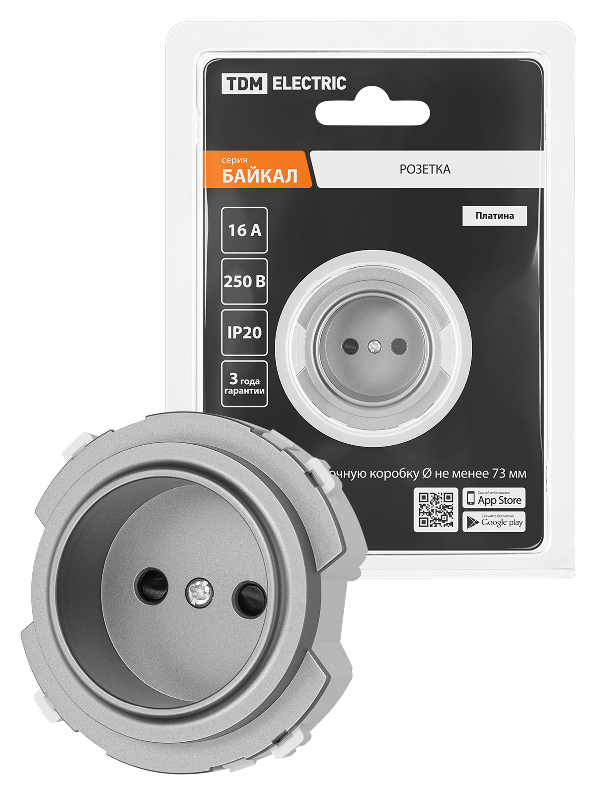 Наименование: Розетка 2П 16А 250В с защ. шт. платина, "Байкал" TDM
