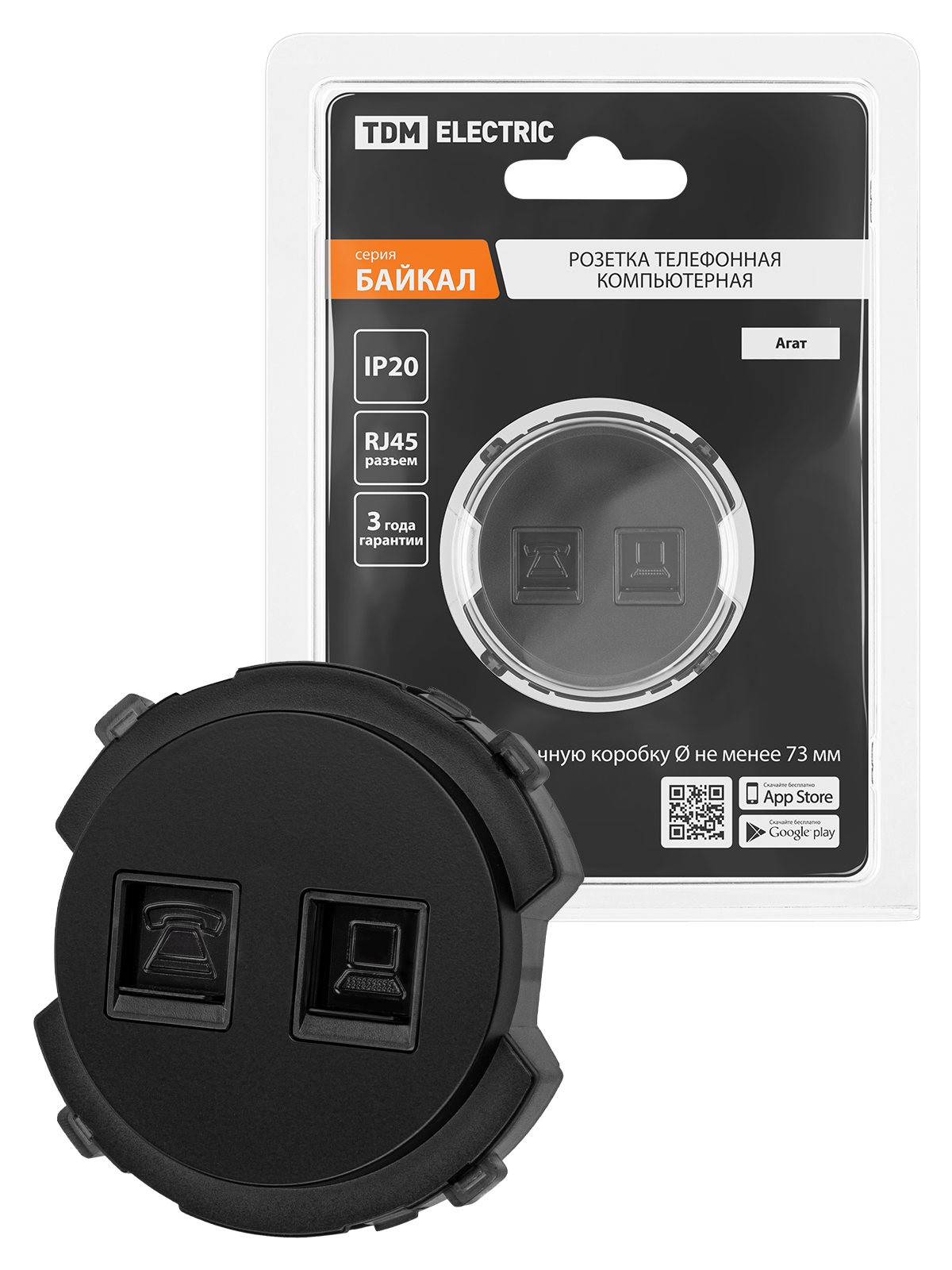Наименование: Розетка телефонная RJ11 + компьютерная RJ45 агат, "Байкал" TDM