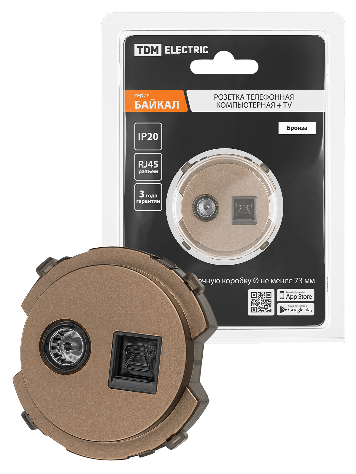 Наименование: Розетка телефонная RJ11 + TV розетка оконечная бронза, "Байкал" TDM