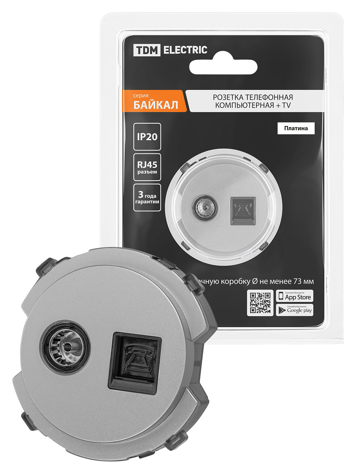 Наименование: Розетка телефонная RJ11 + TV розетка оконечная платина, "Байкал" TDM