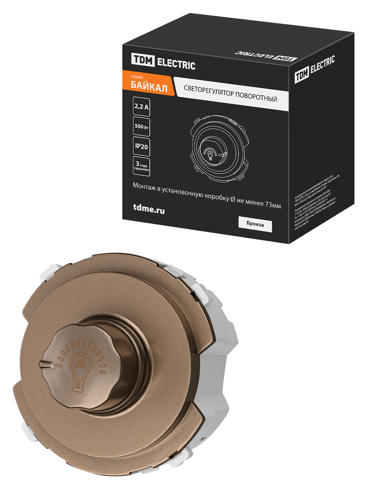 Наименование: Светорегулятор (RL, 500Вт) поворотный бронза, "Байкал" TDM