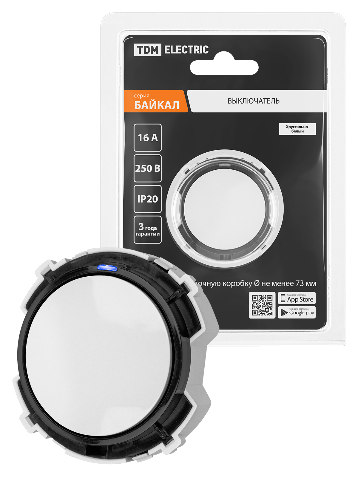 Наименование: Выключатель 1-кл. 16А 250В кнопочный механизм белый, "Байкал" TDM