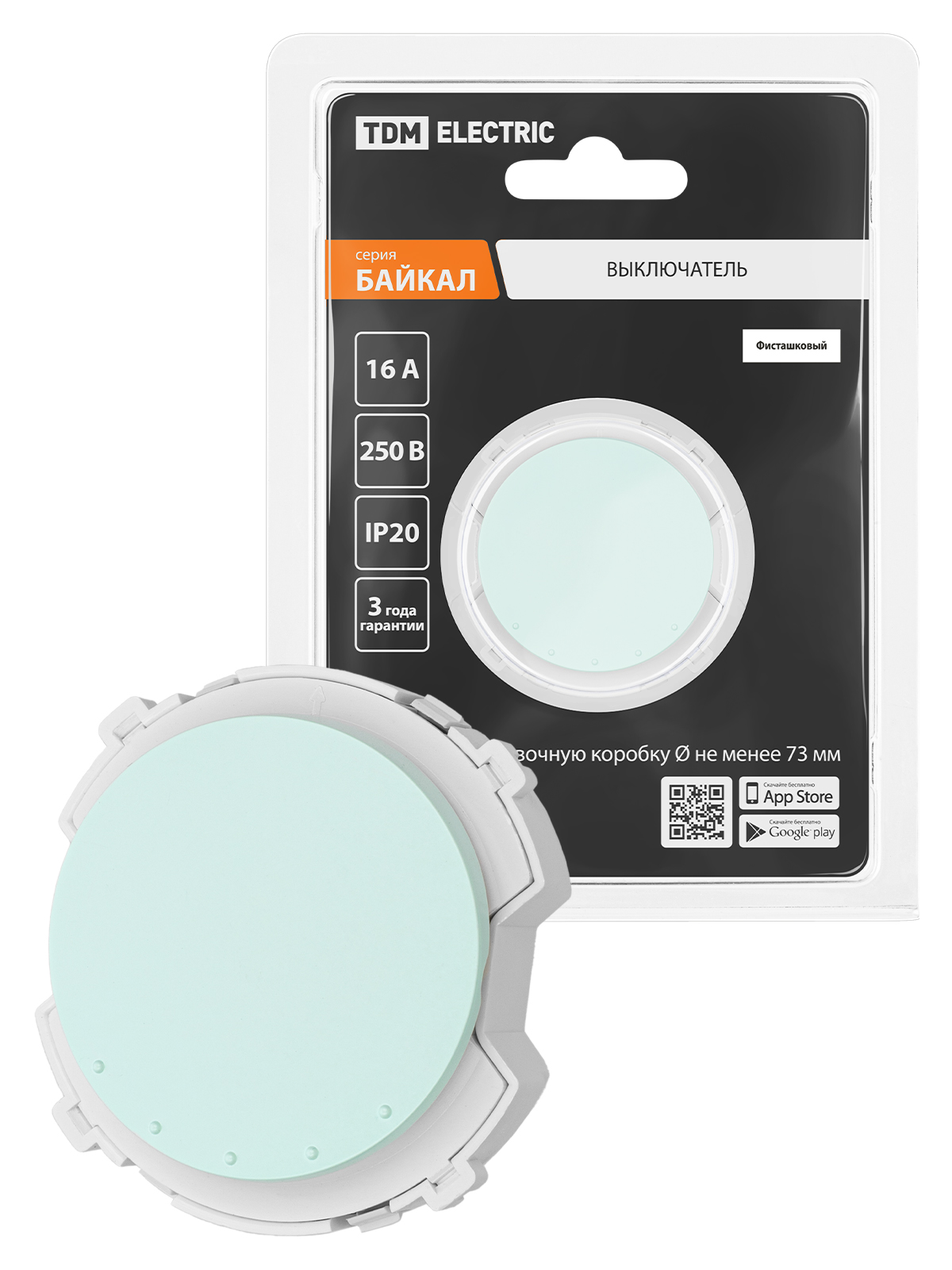Наименование: Выключатель 1-кл. 16А 250В проходной фисташковый, "Байкал" TDM